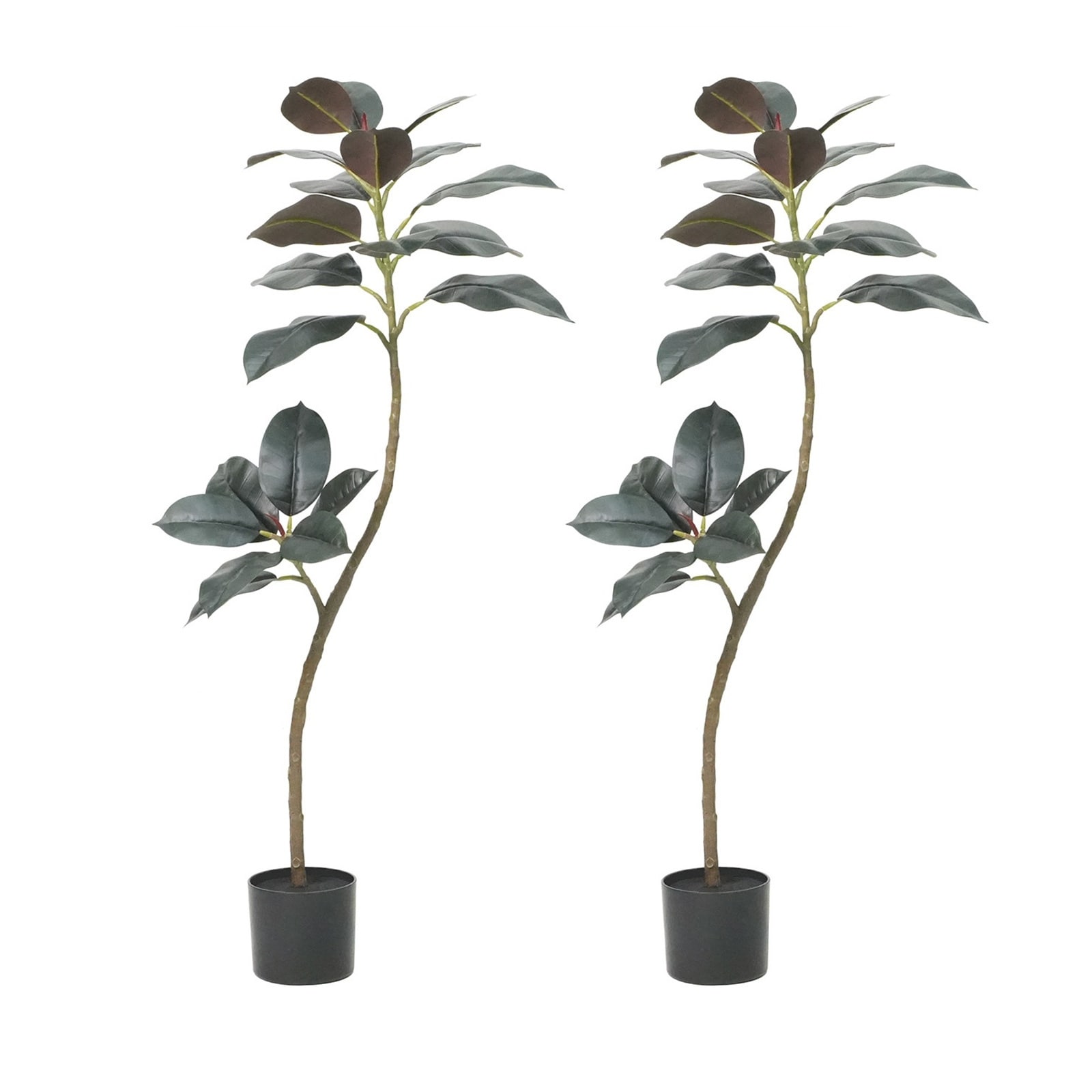 2pcs Artificial Rubber Tree with Black Pot For Living Room