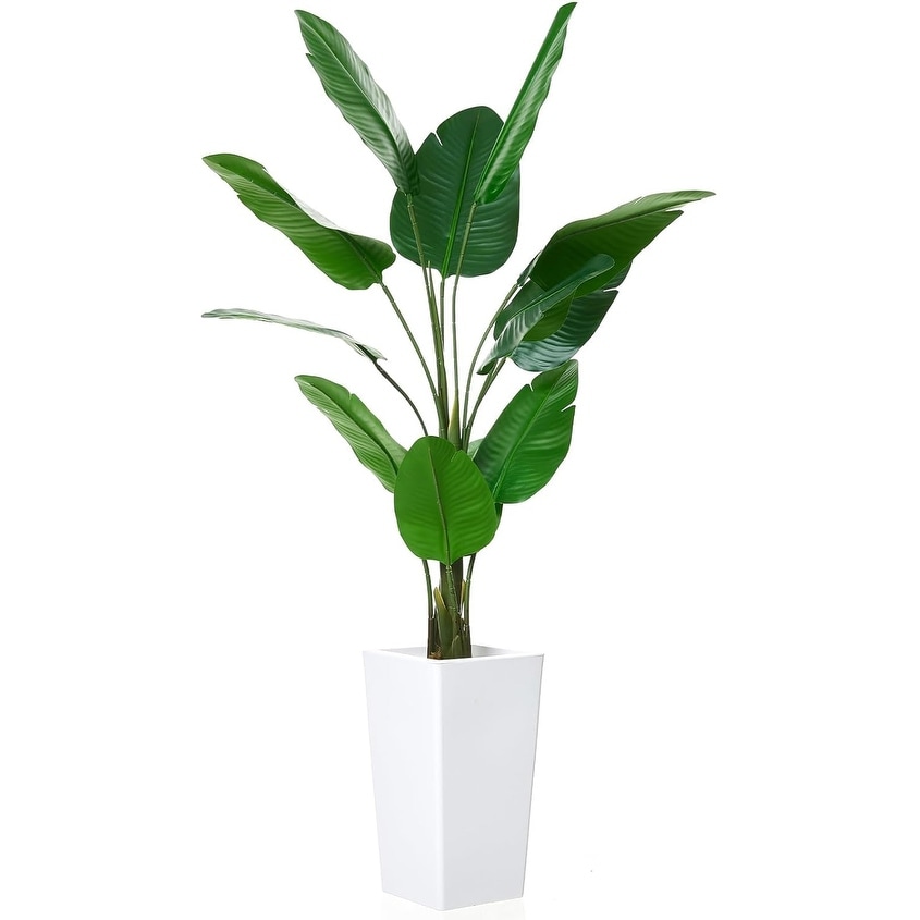Artificial Bird of Paradise Plant 6FT(72in) Fake Palm Tree with 17 Trunks Faux Leaves and 3 Faux Flowers