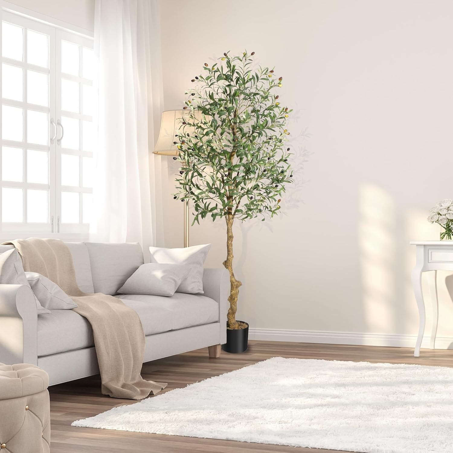 6FT Artificial Olive Tree with Adjustable Stems & Fruits, Faux Potted Plant for Home & Office