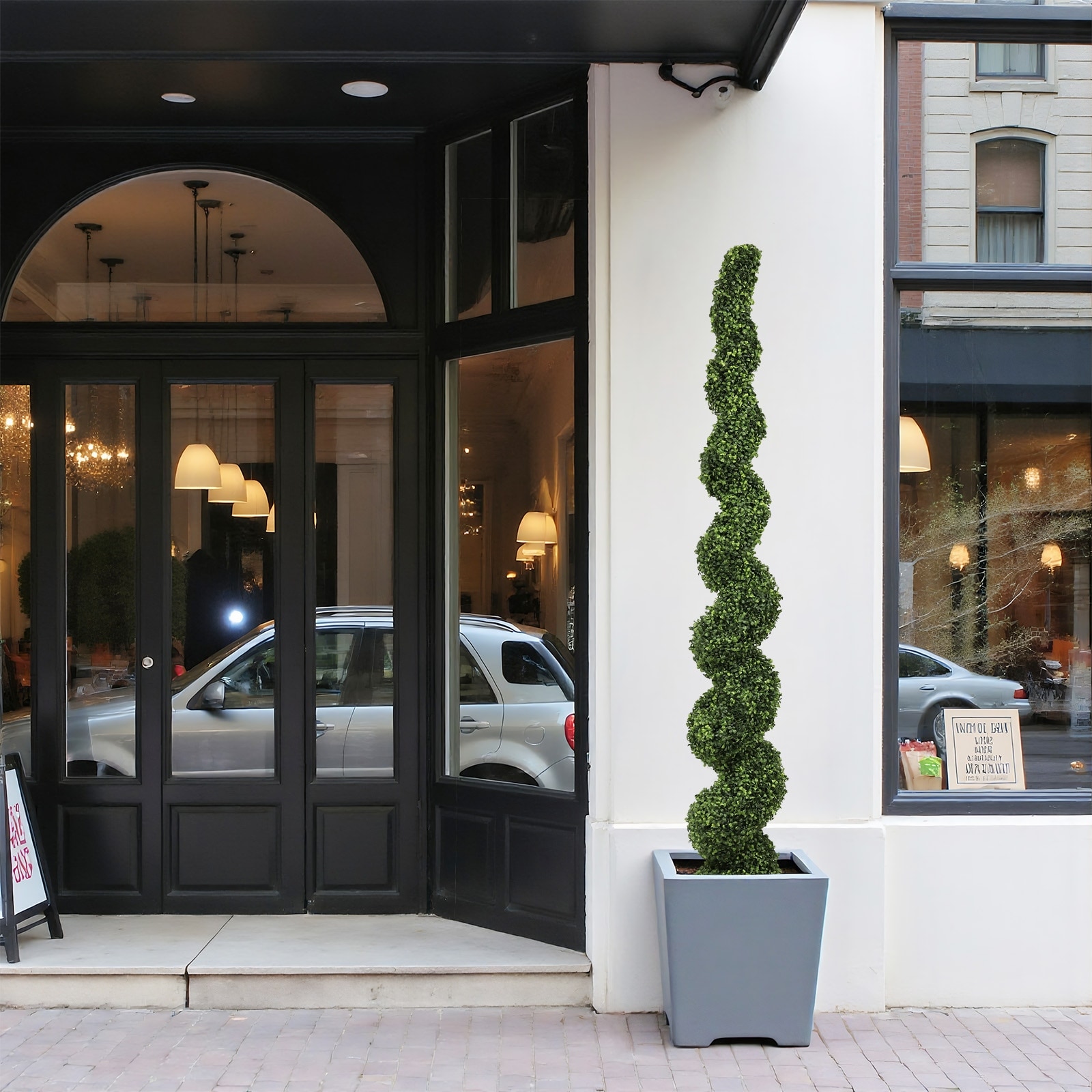 7FT Spiral Topiary Trees Artificial Faux Boxwood Plants Large Twisted Green Potted Trees with Light Green Leaves,1pc/set