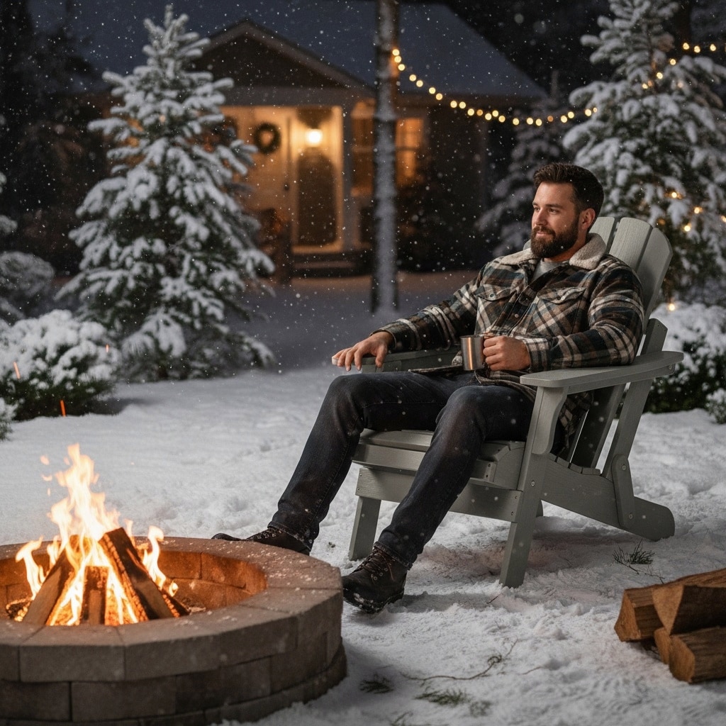 Outdoor Wooden Folding Adirondack Chair with Pre-Assembled BackRest