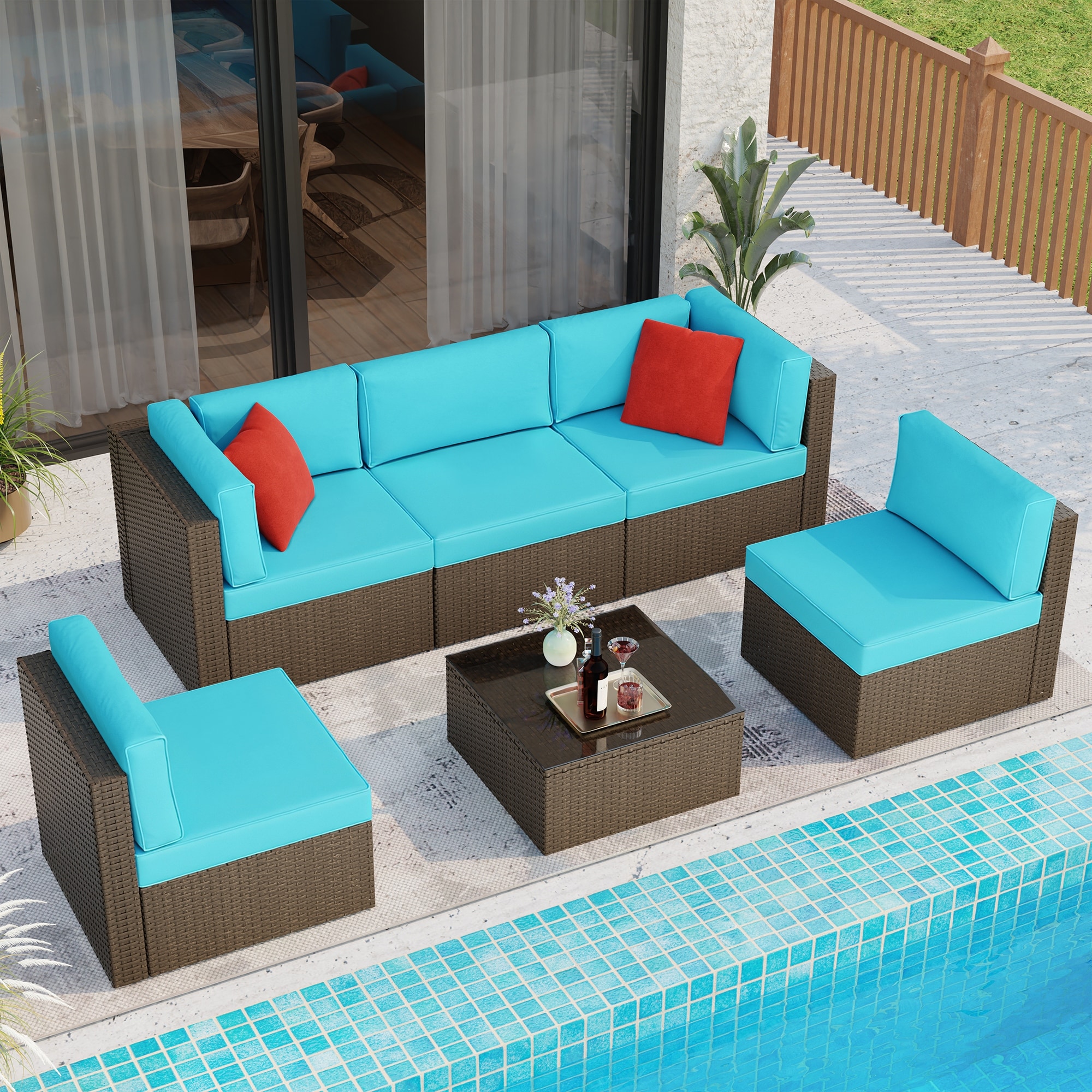 OVIOS 6-piece Outdoor Patio Wicker Conversation Set With Glass-Top Table