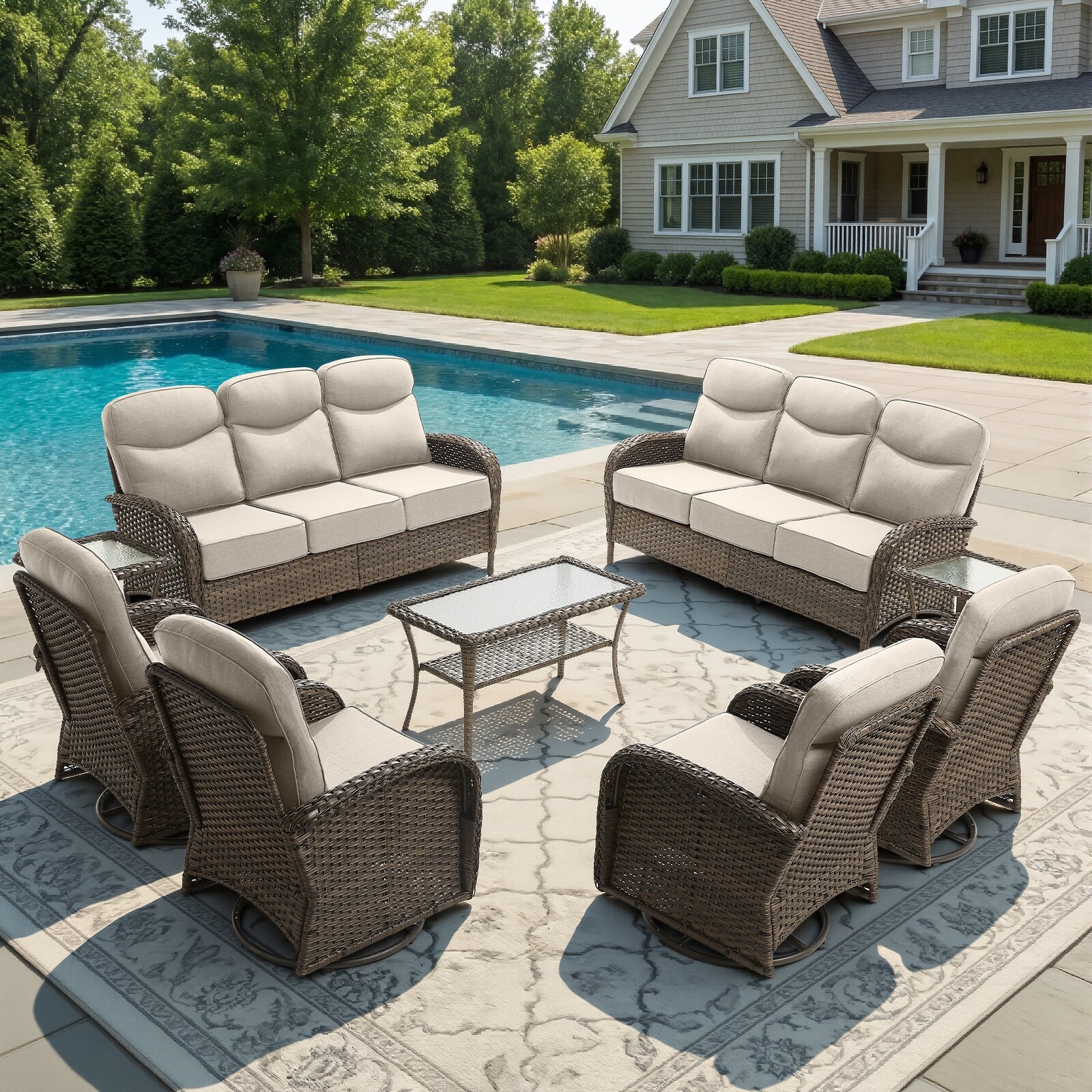 Pocassy Outdoor 9-Piece Sofa Swivel Chair with Coffee Table
