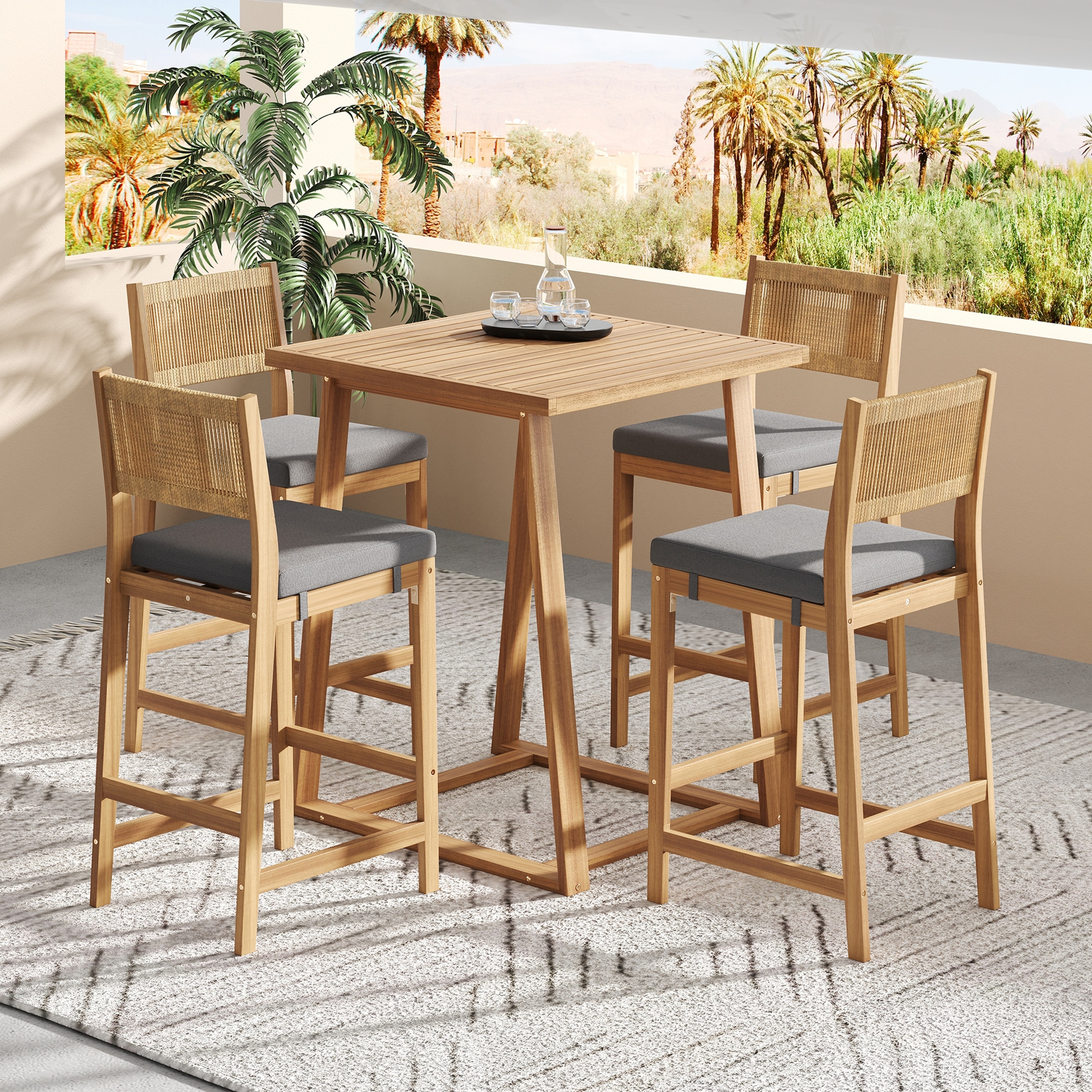 Christopher Knight Home - Hudson 5-Piece Acacia Wood Outdoor Bar Set