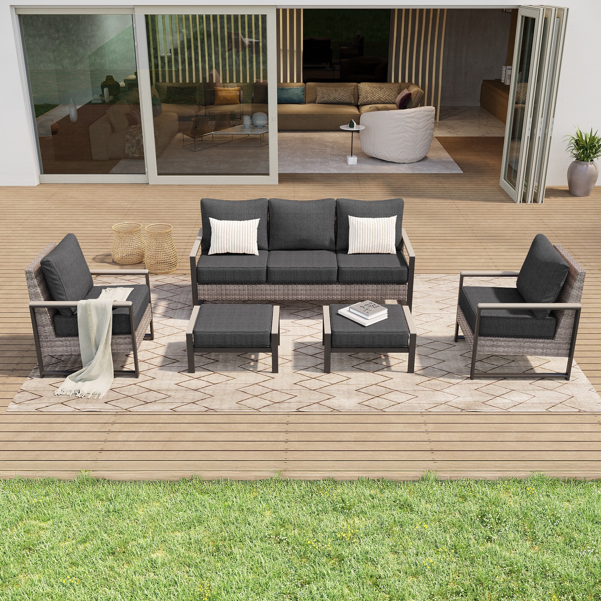 Modern 6-piece Outdoor Wicker Conversation Sofa Set