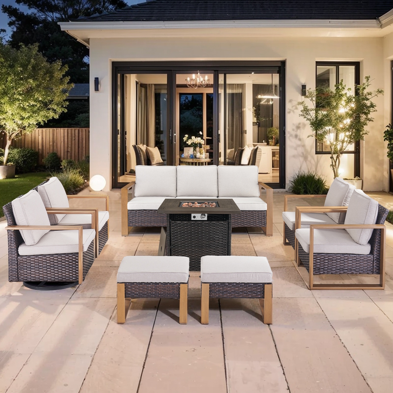 Pocassy Outdoor Fire Pit Conversation Set 3-Seat Sofa Chairs Patio Furniture Set