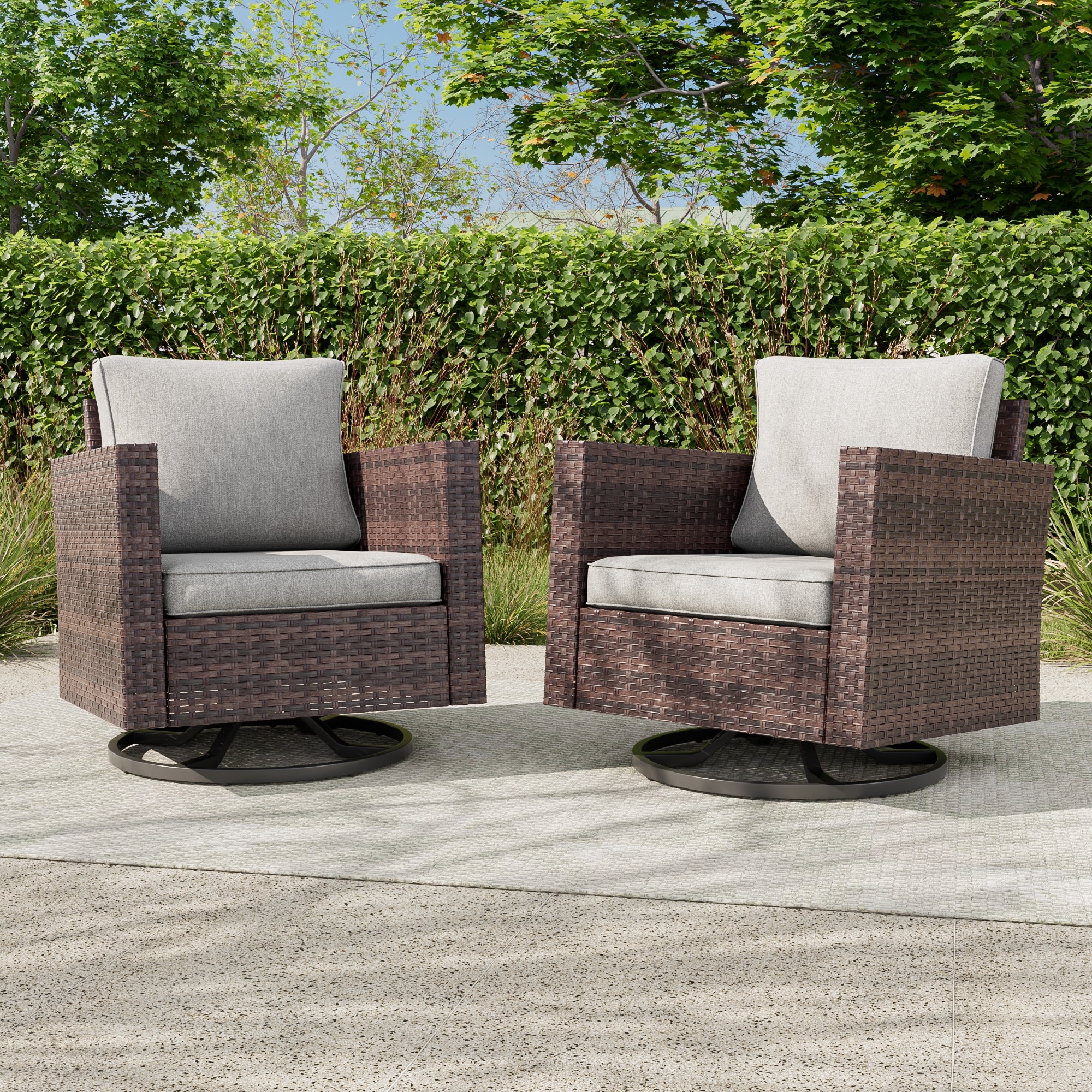 BONOSUKI 2-Piece Patio Chair Set Brown Rattan Swivel Rocking Chair Set, Outdoor Furniture PE Wicker Set