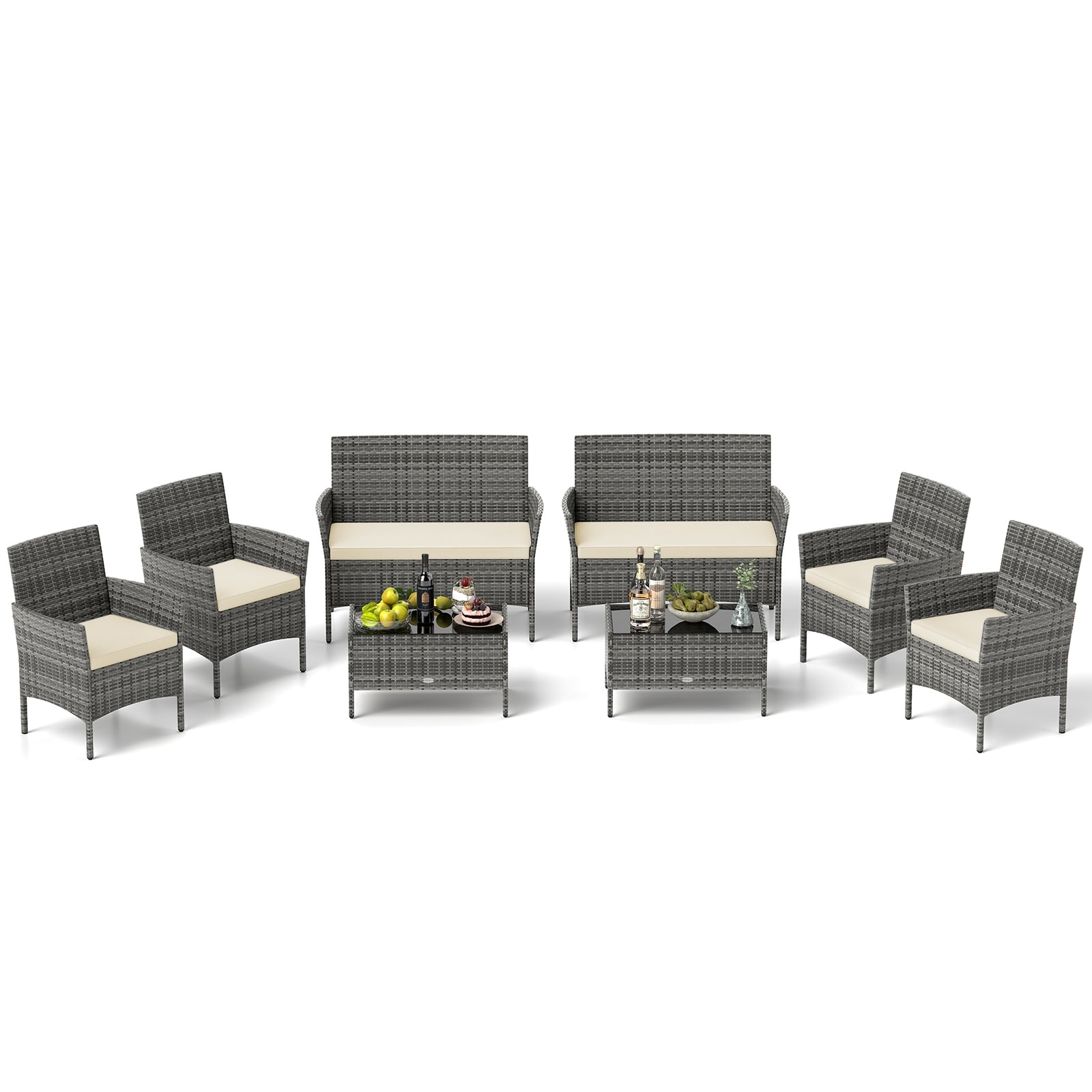 Gymax Set Of 8 Patio Furniture Set w/Washable Cushions & Tempered