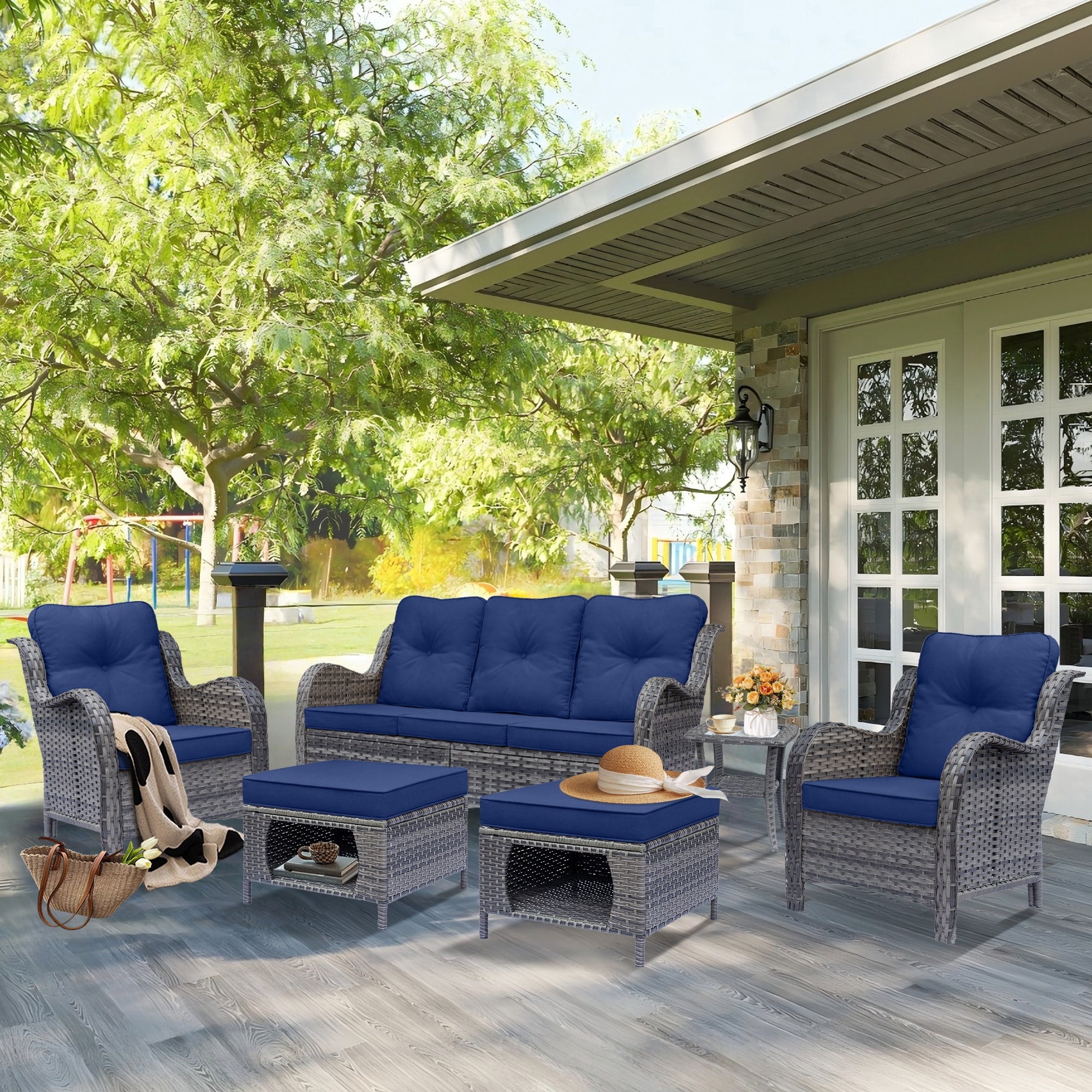 OVIOS Deep Seat Wicker 5-piece Sectional Set