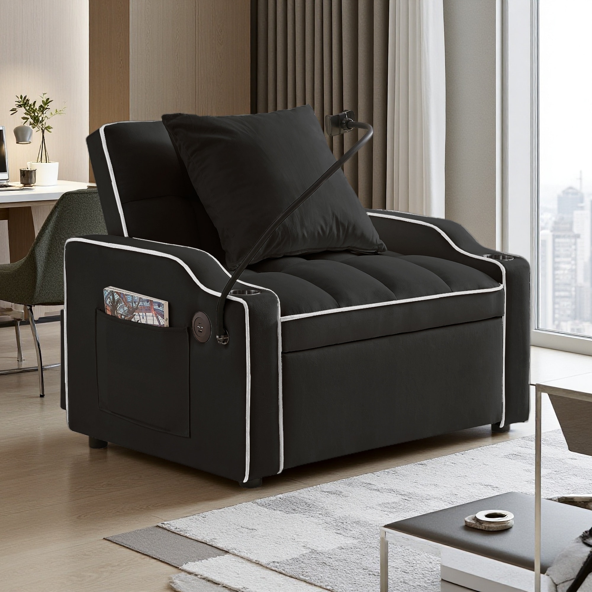 35.83" 3-in-1 Convertible Sofa Bed, Adjustable Pull-Out Chair Bed with USB Ports, Multi-Pockets Folding Sofa for Living Room