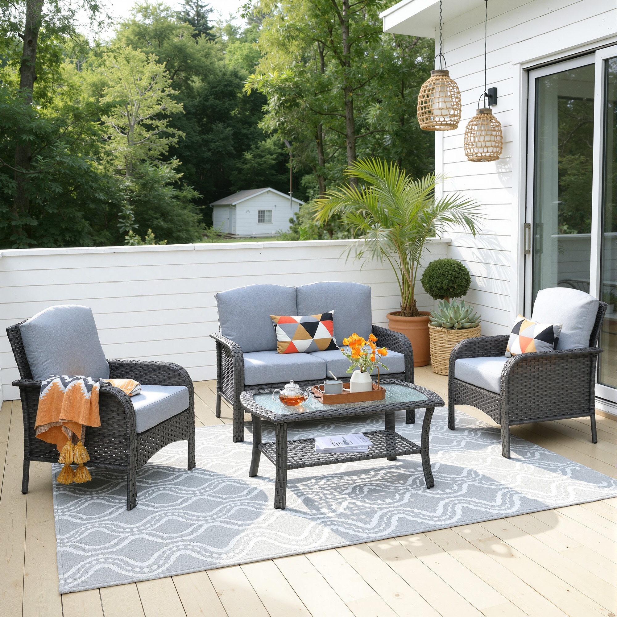 HOOOWOOO 4-piece Wicker Outdoor Conversation Set with Glass Coffee Table