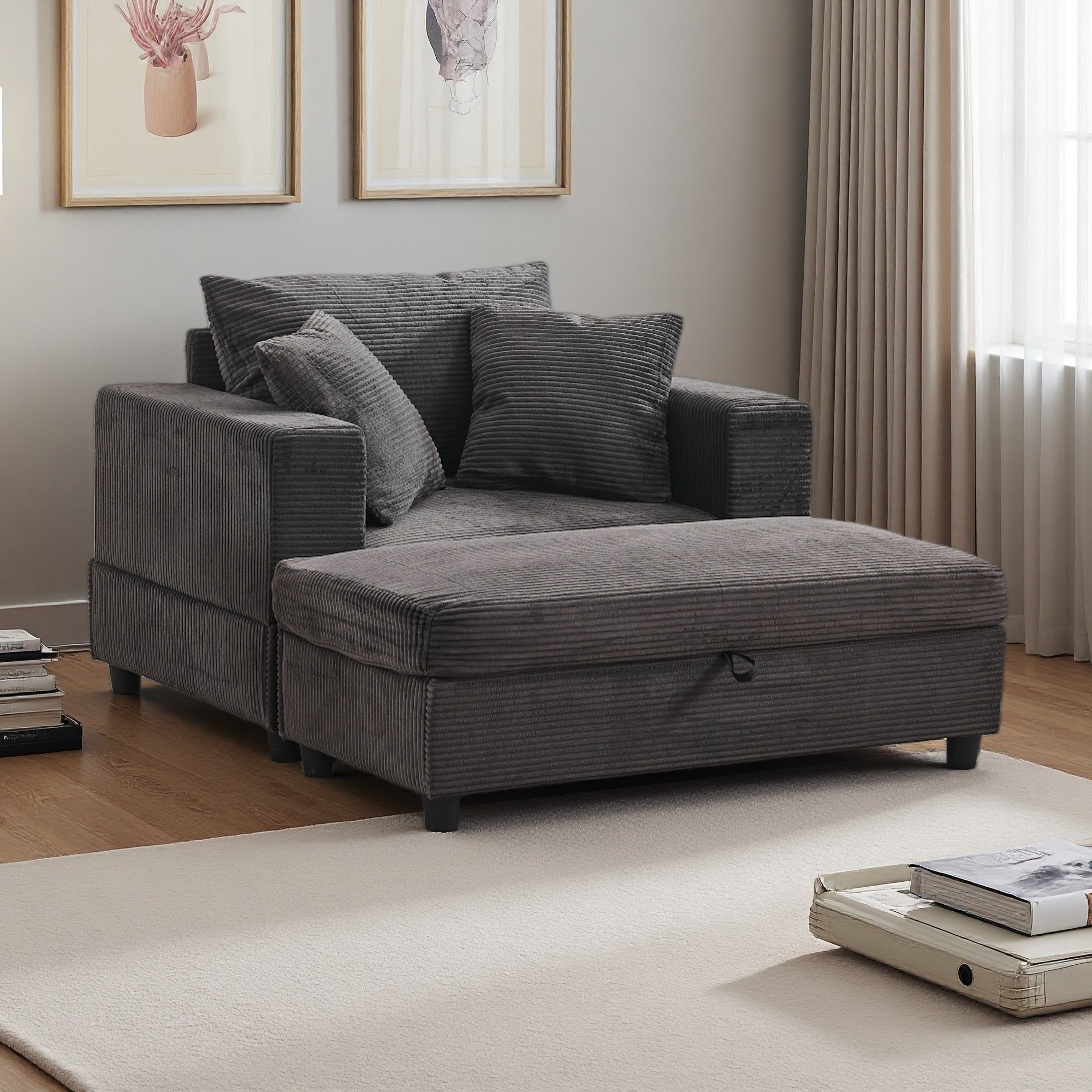 54.13" Corduroy Chaise Lounge Chair Sofa with Removable Storage Ottoman and 2 Lumbar Pillows