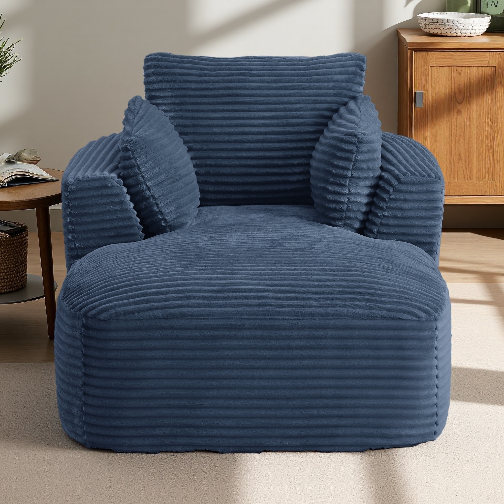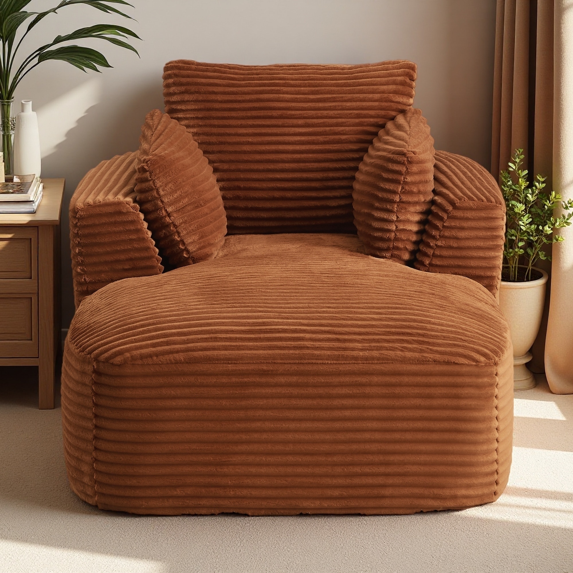 45.3" Oversized Corduroy Chaise Lounge Chair, No Assembly, Upholstered Sofa Couch with Spring Cushion, Comfy Sleeper for Dorm