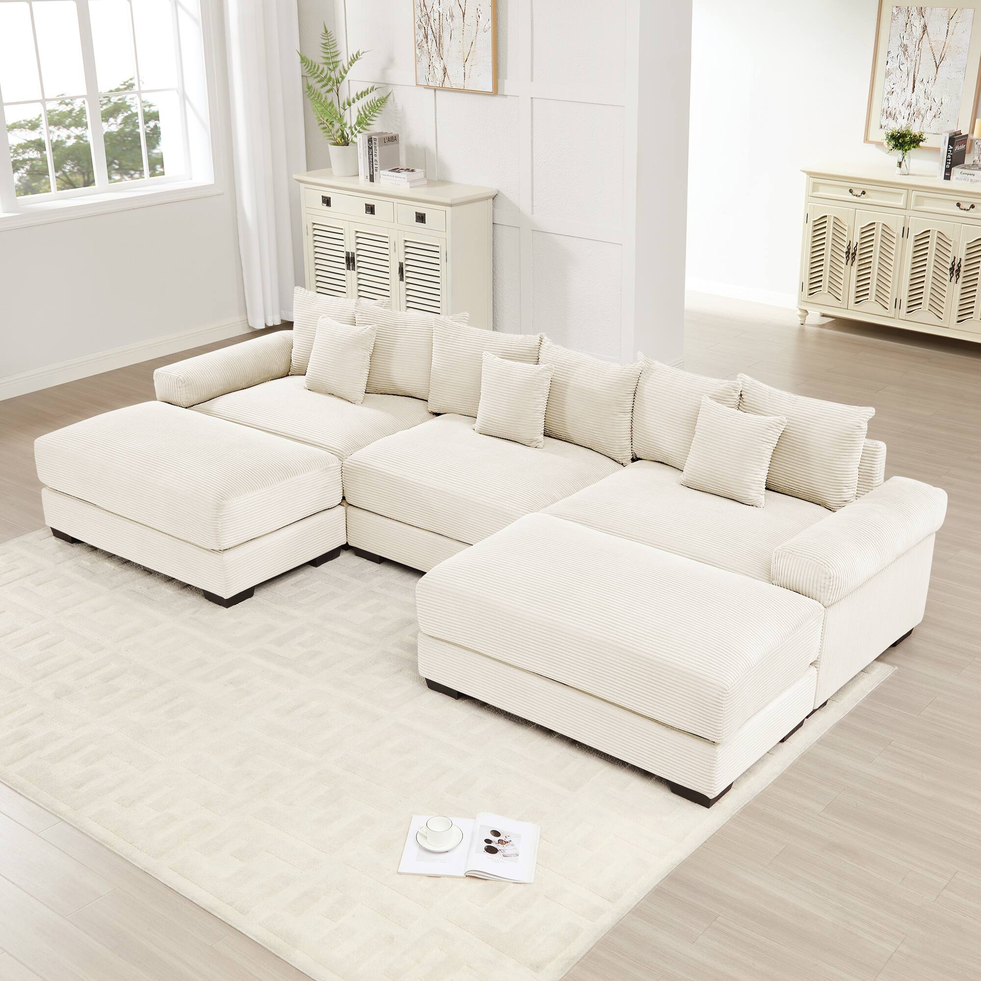 Oversized Corduroy Cloud Modular Sofa with Throw Pillows