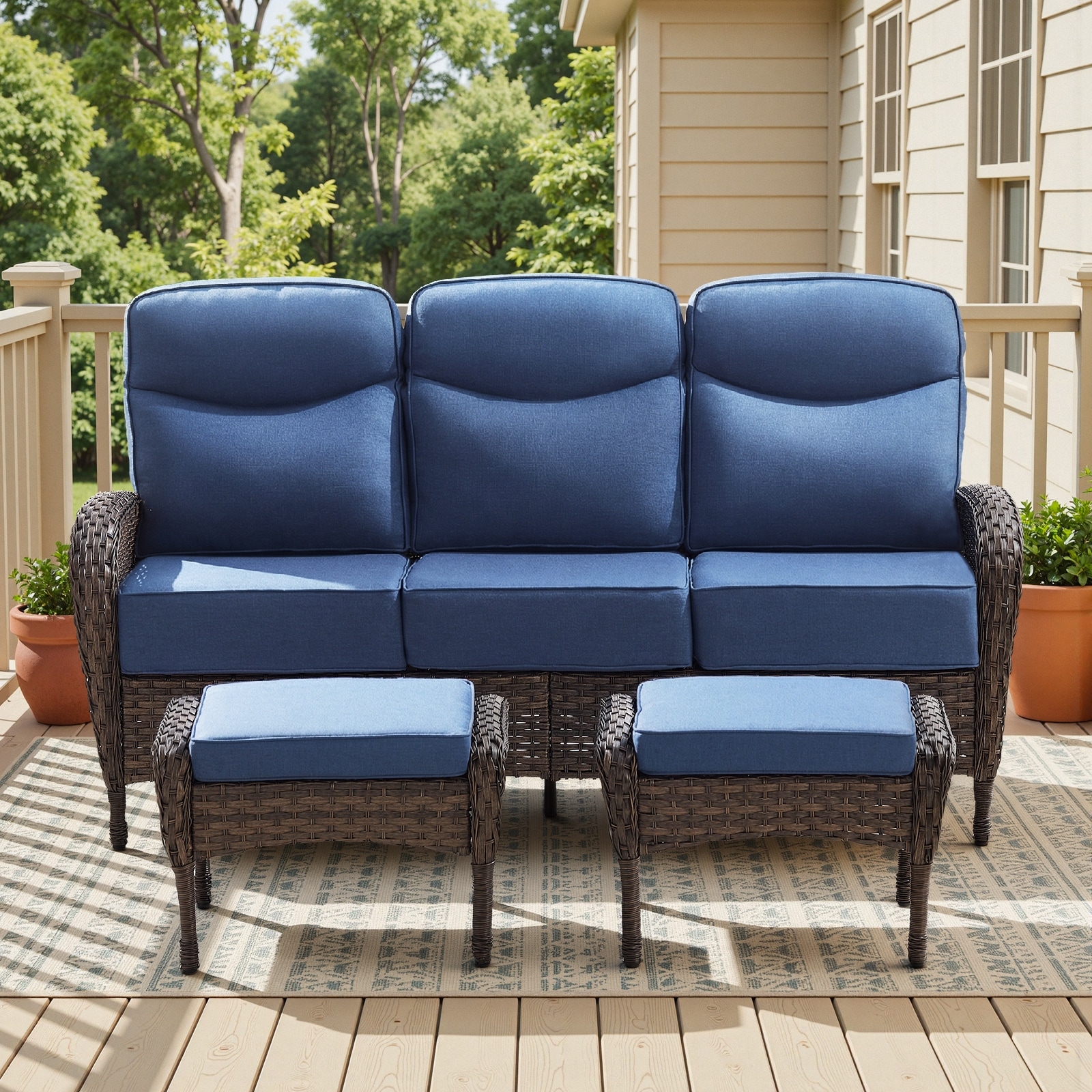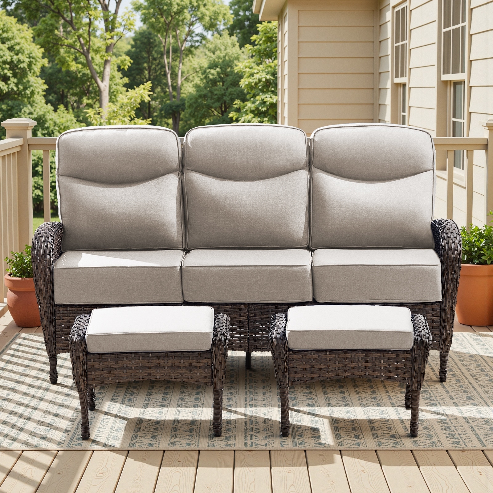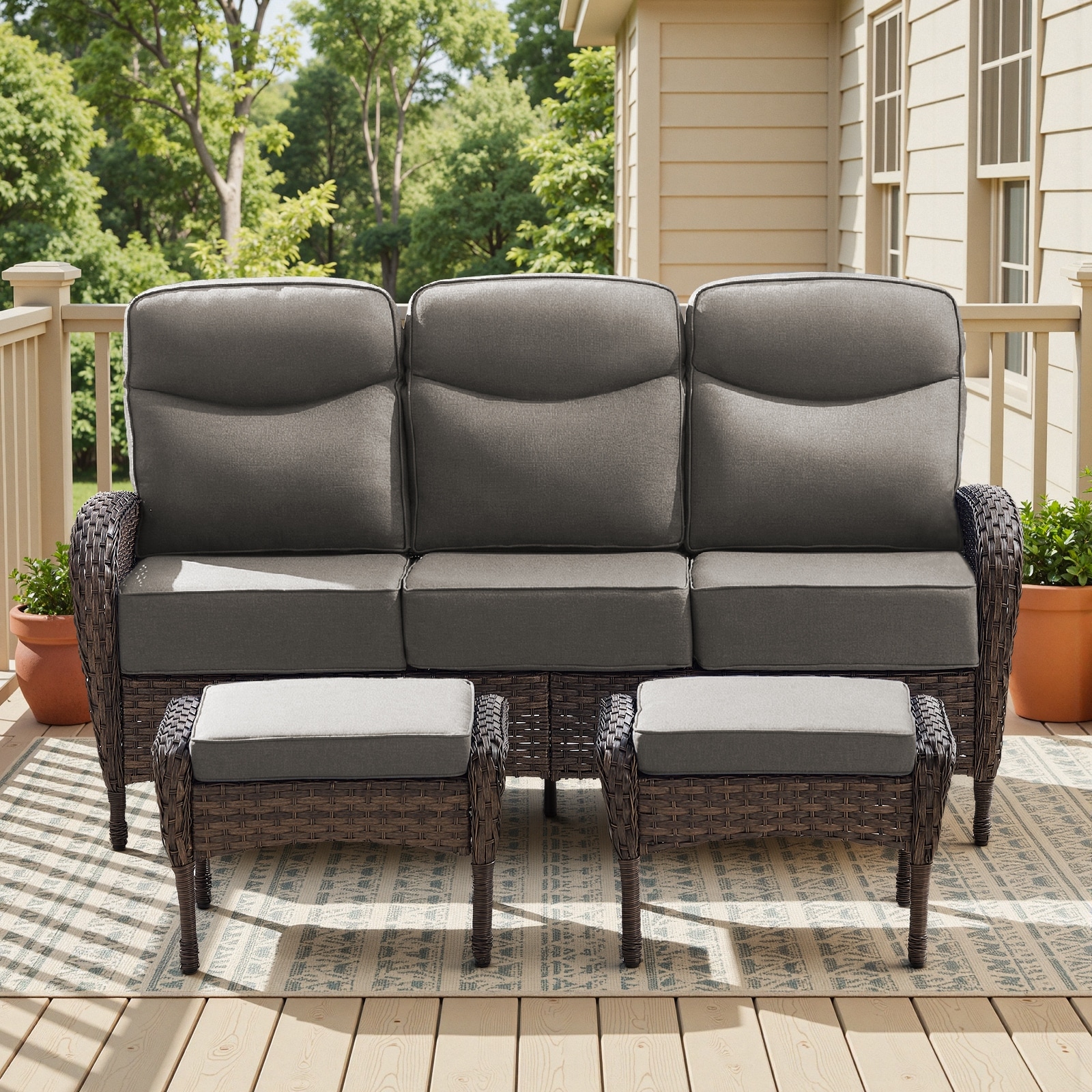 Gymojoy 5 - Person Outdoor Wicker Patio Sofa Set with 3-Seater Couch & 2 Ottomans, 6" Cushions