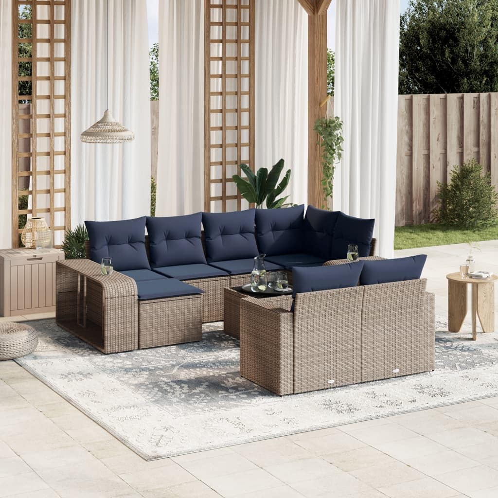 vidaXL 10 Piece Patio Sofa Set with Cushions Black/Brown/Gray Poly Rattan