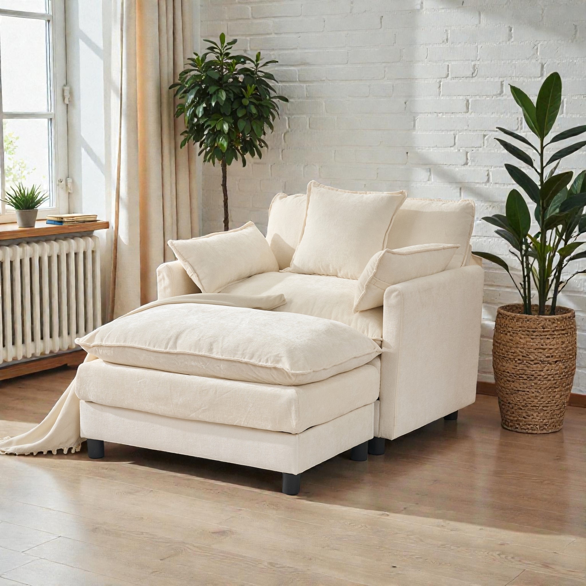 Oversized Chenille Accent Armchair with Solid Wood Frame and Square Modern Design, Single Sofa for Living Room Bedroom Office