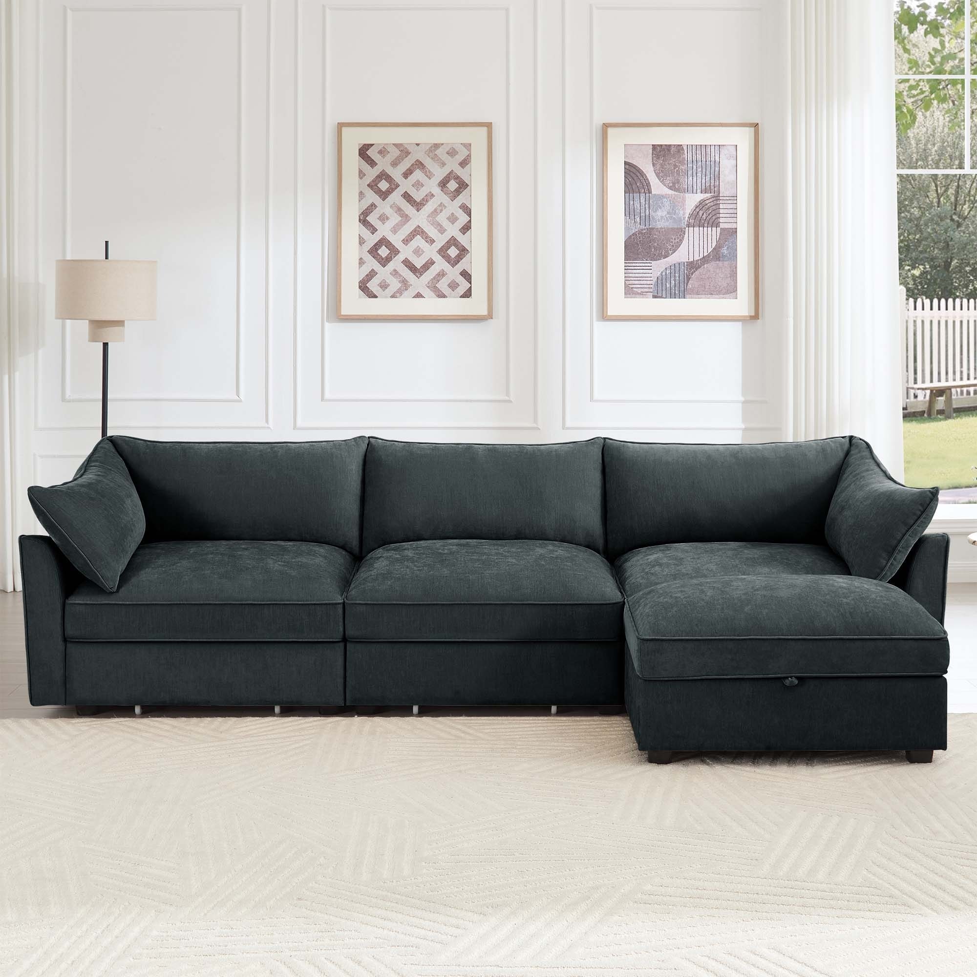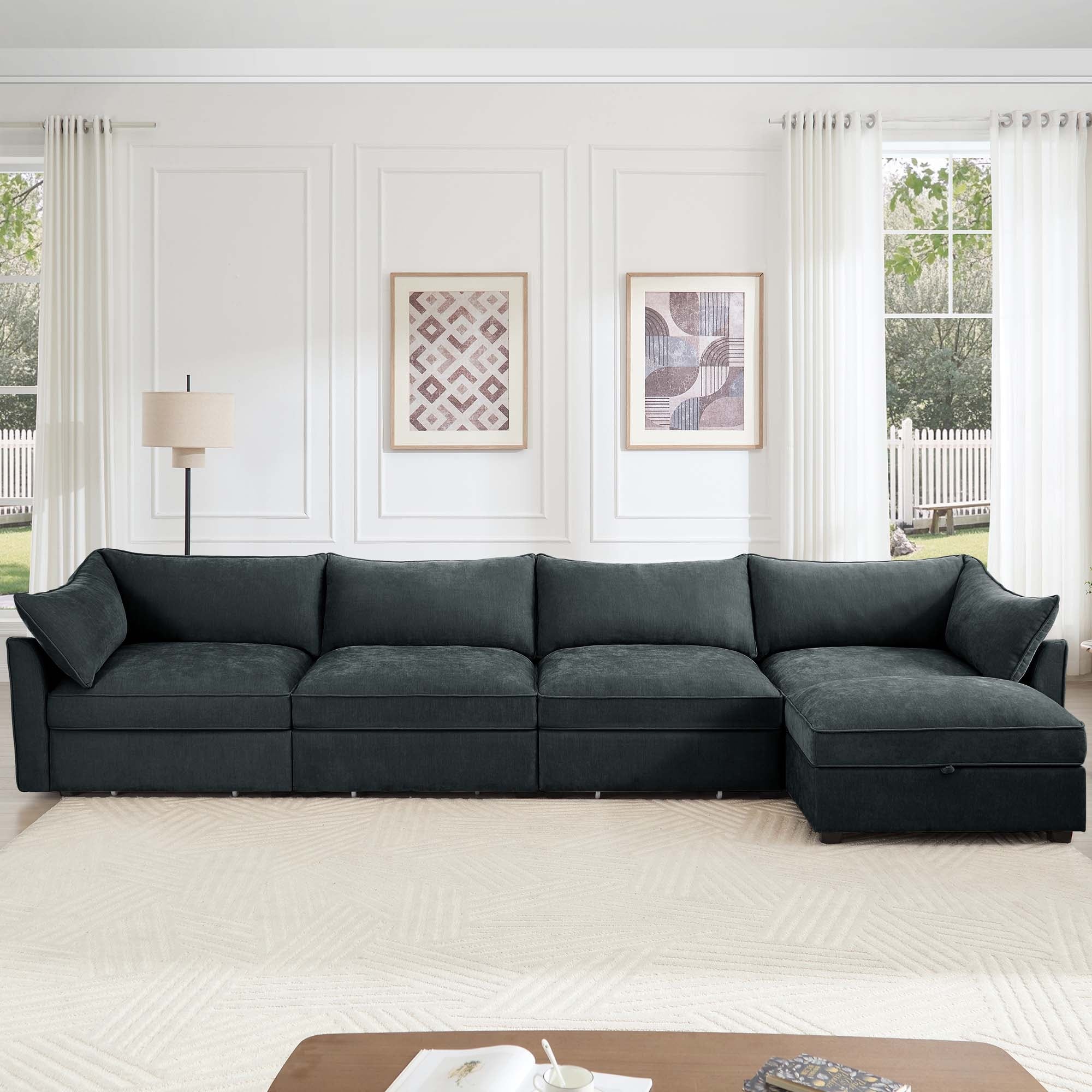 107.88" Corduroy Modular Cloud Sofa with Deep Seating and No Assembly Required (4-Seater)