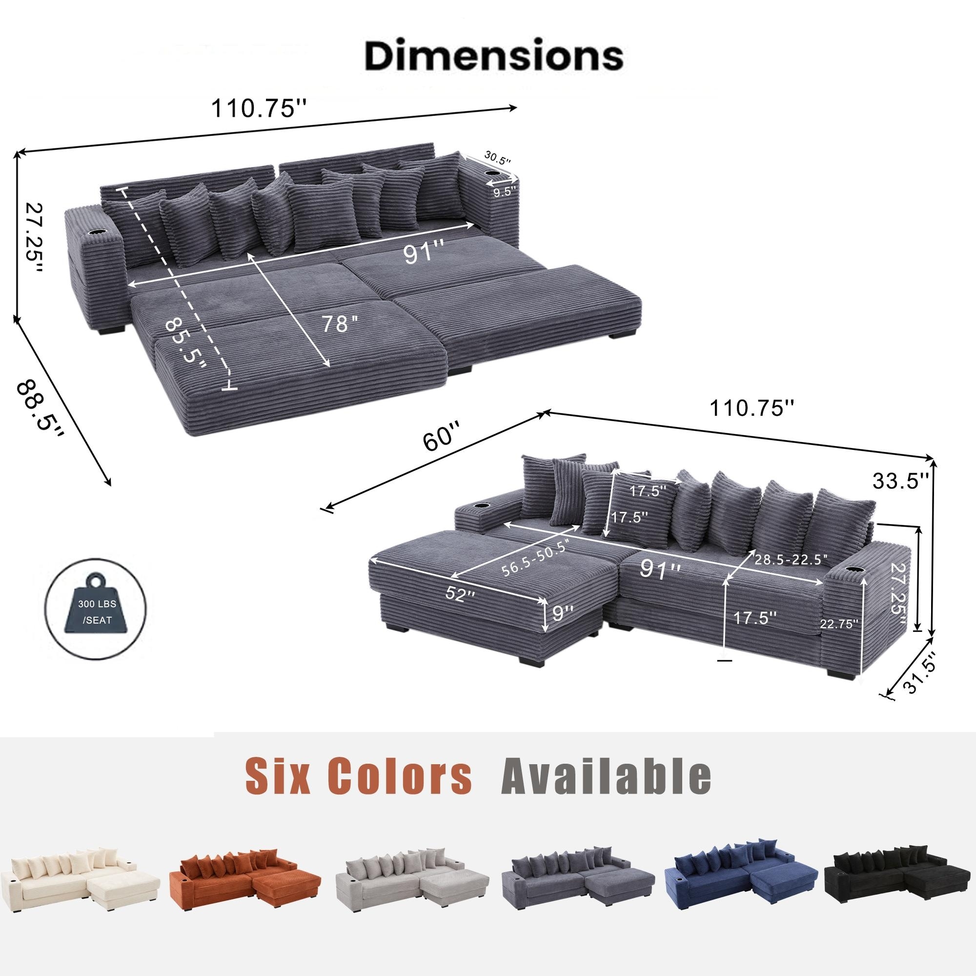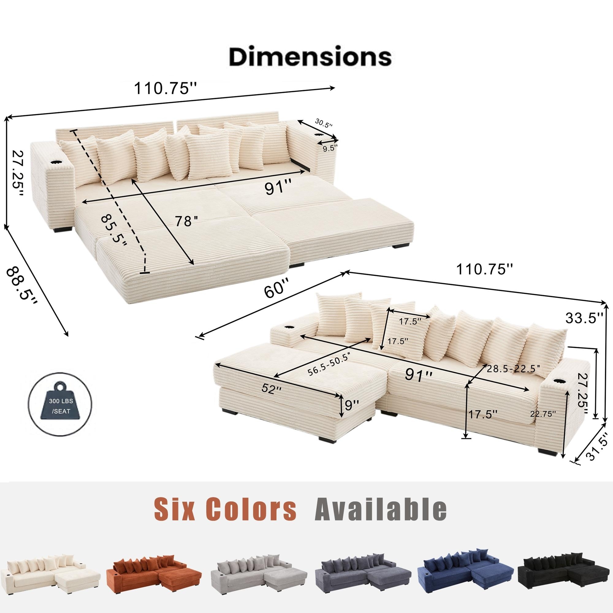 Plush Corduroy Upholstered Modular Sectional Sofa with Chaise