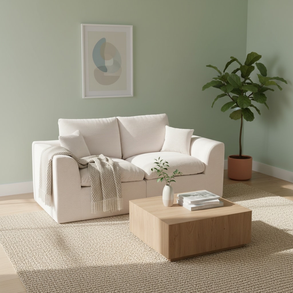Modular Corduroy Loveseat Set, No-Assembly Modular Sofa with Detachable Cover