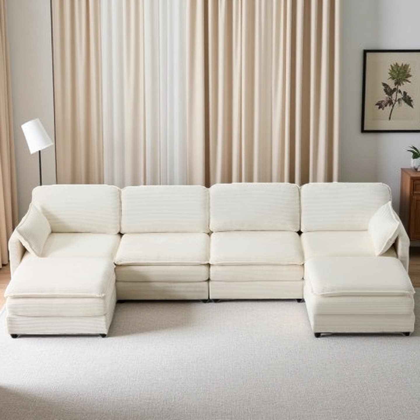 Corduroy Fabric Modular Comfy Deep Sectional Sofa with Ottomans and Two Pillows