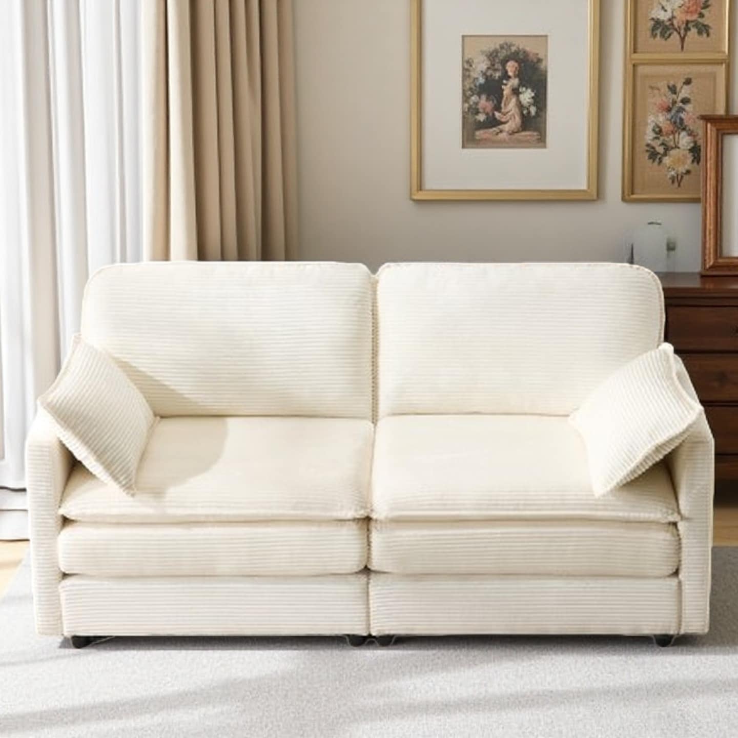69-Inch Modular 2-Seater Corduroy Loveseat with High-Resilience Foam, Removable Cushions, and Throw Pillows