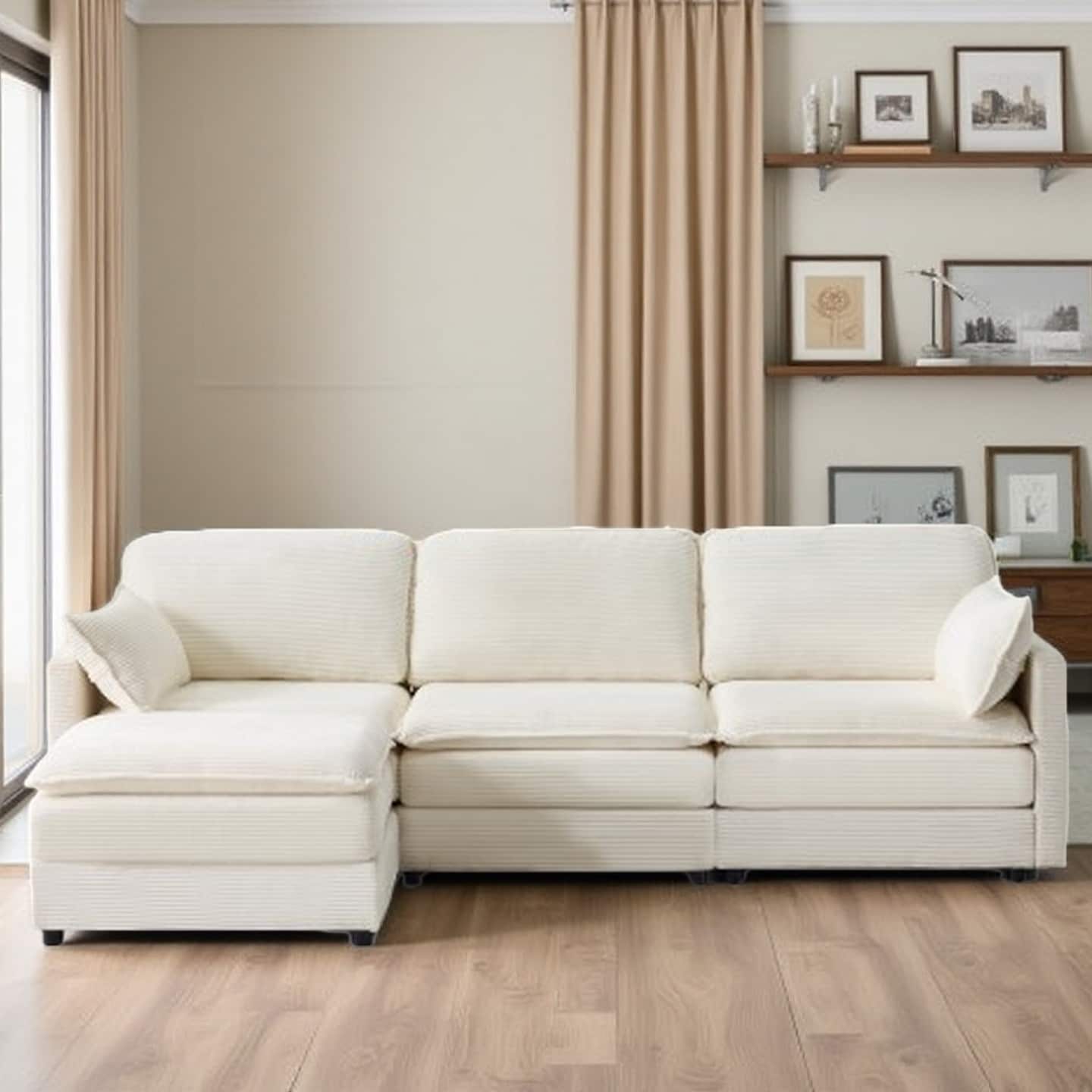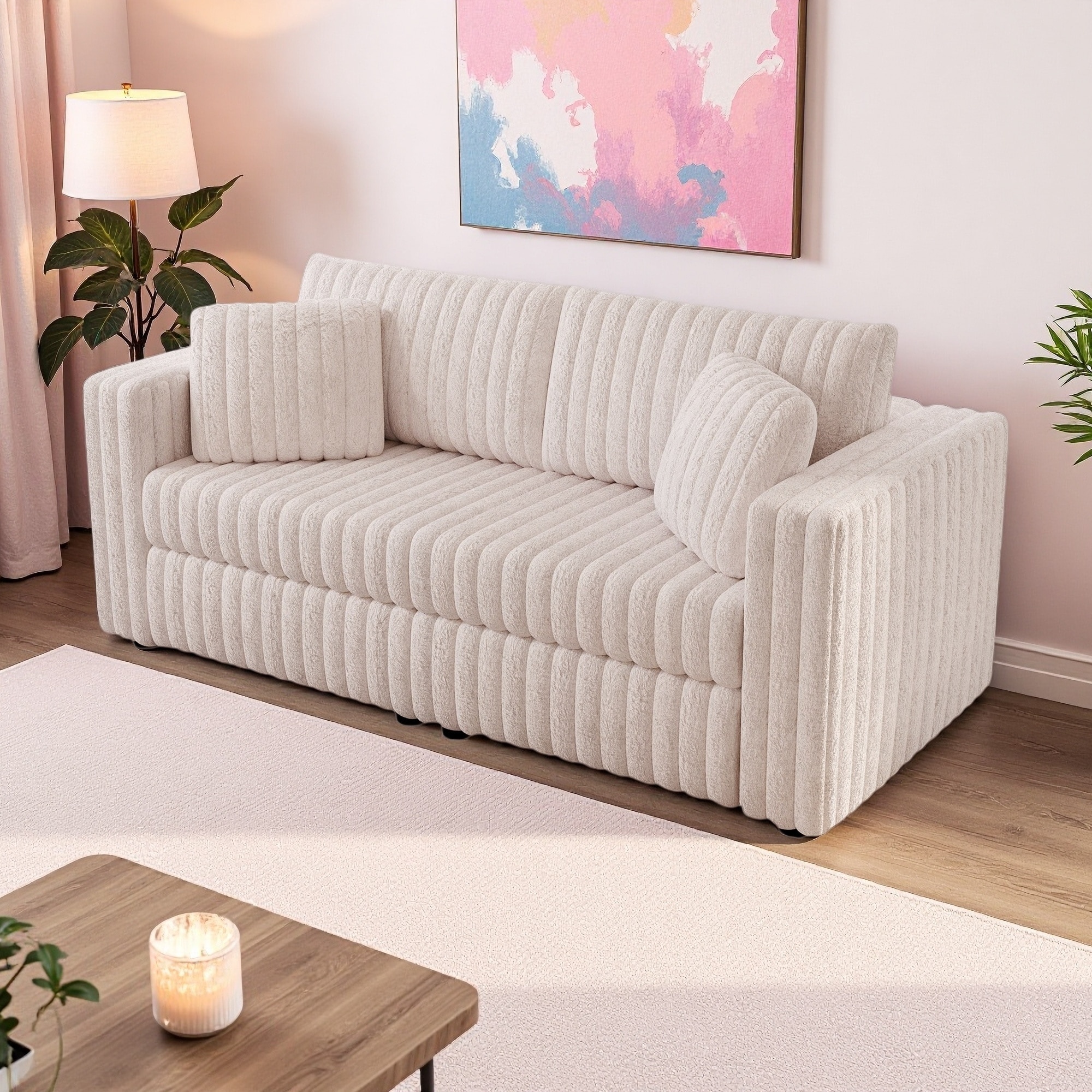 69-Inch Modular 2-Seater Corduroy Loveseat with High-Resilience Foam, Removable Cushions, and Throw Pillows