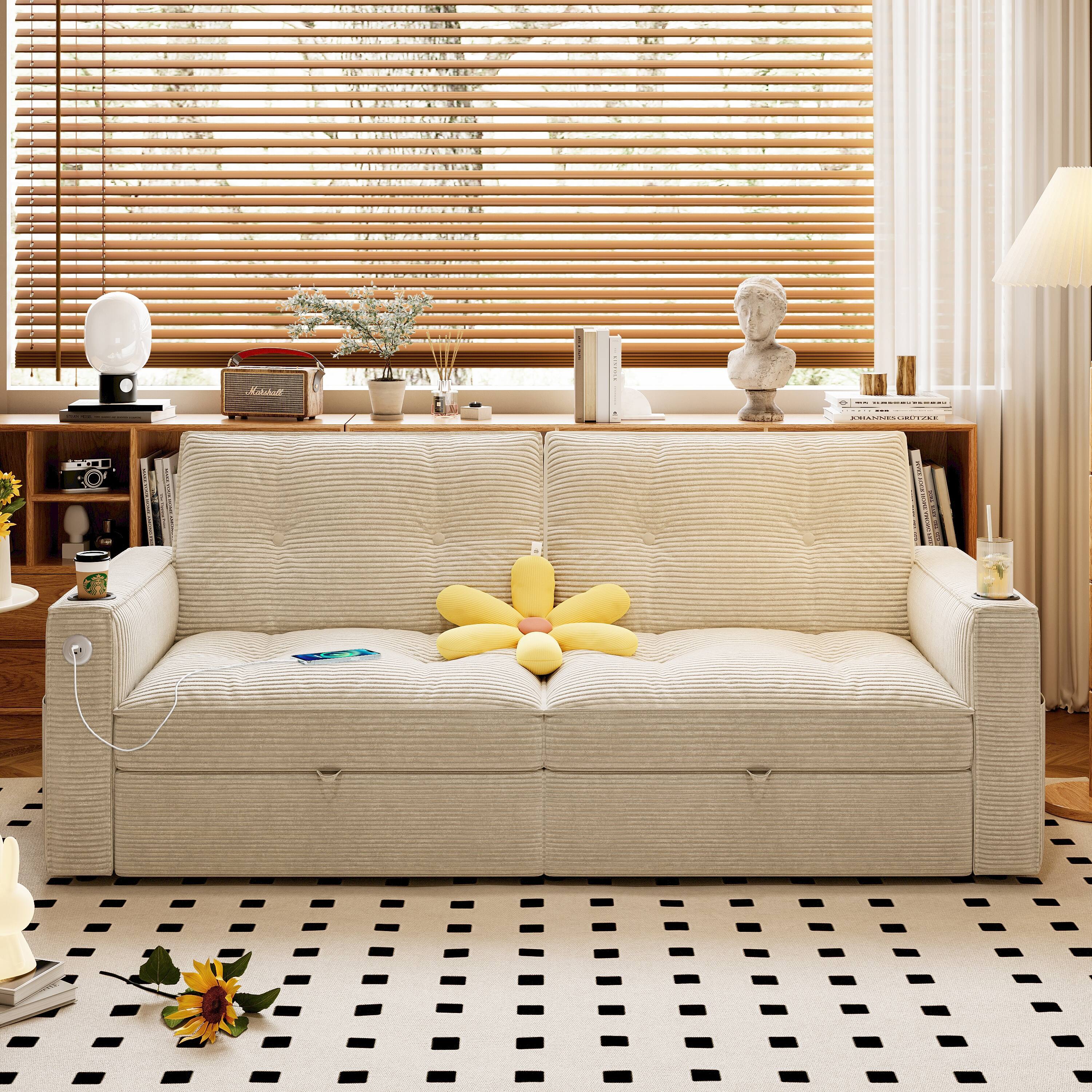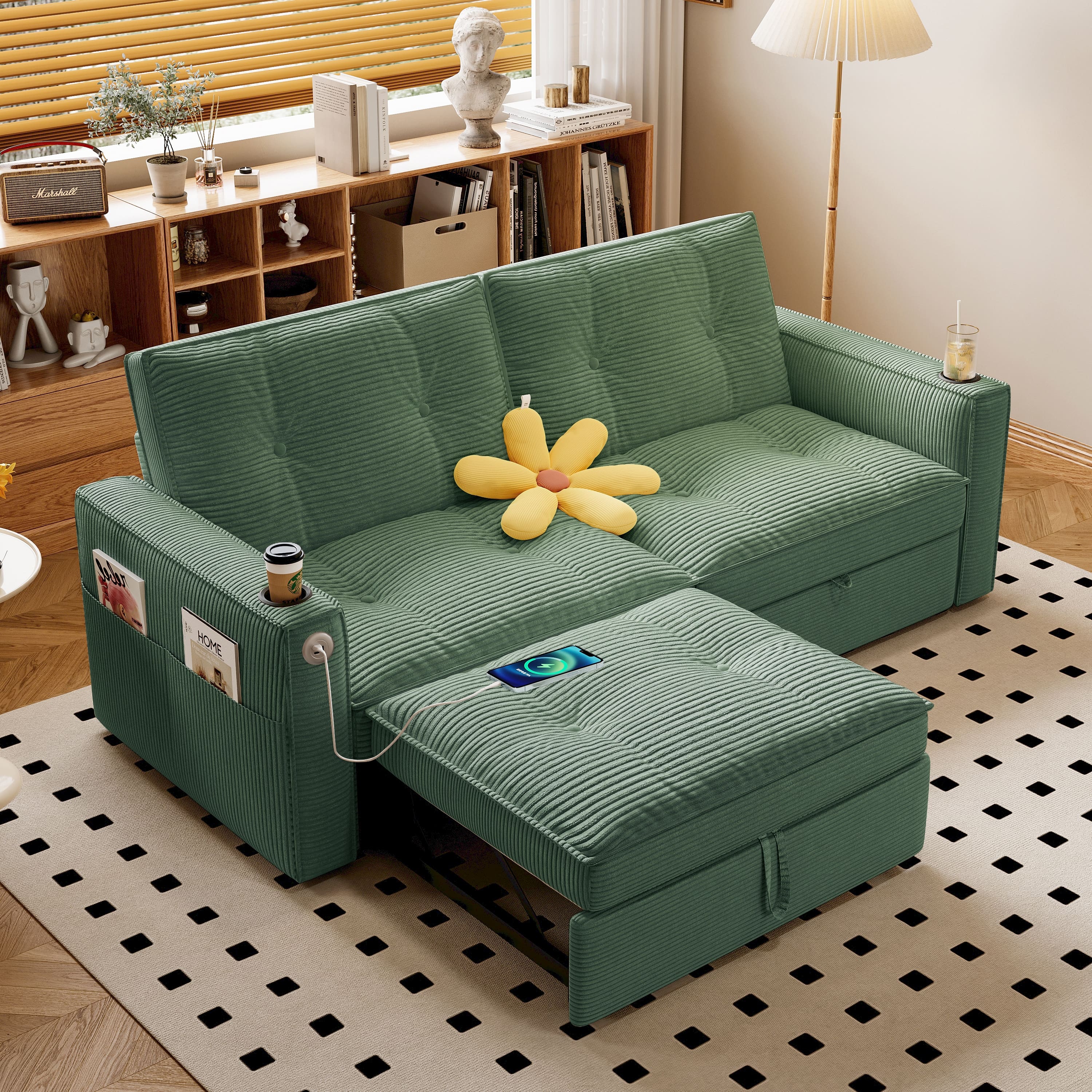 2-In-1 Multi-Functional Convertible Sofa Bed (For Sitting & Sleeping), Modern Corduroy Fabric, For Living Rooms, Bedrooms