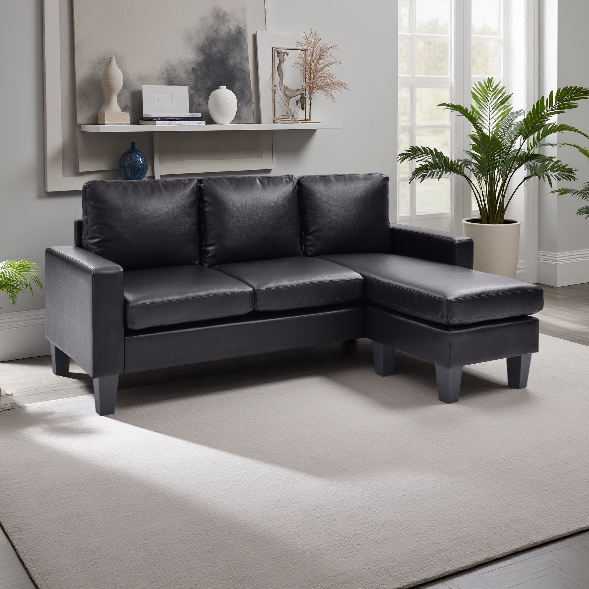 76" PU 3-Seater Reversible Sofa Chaise for Small Spaces