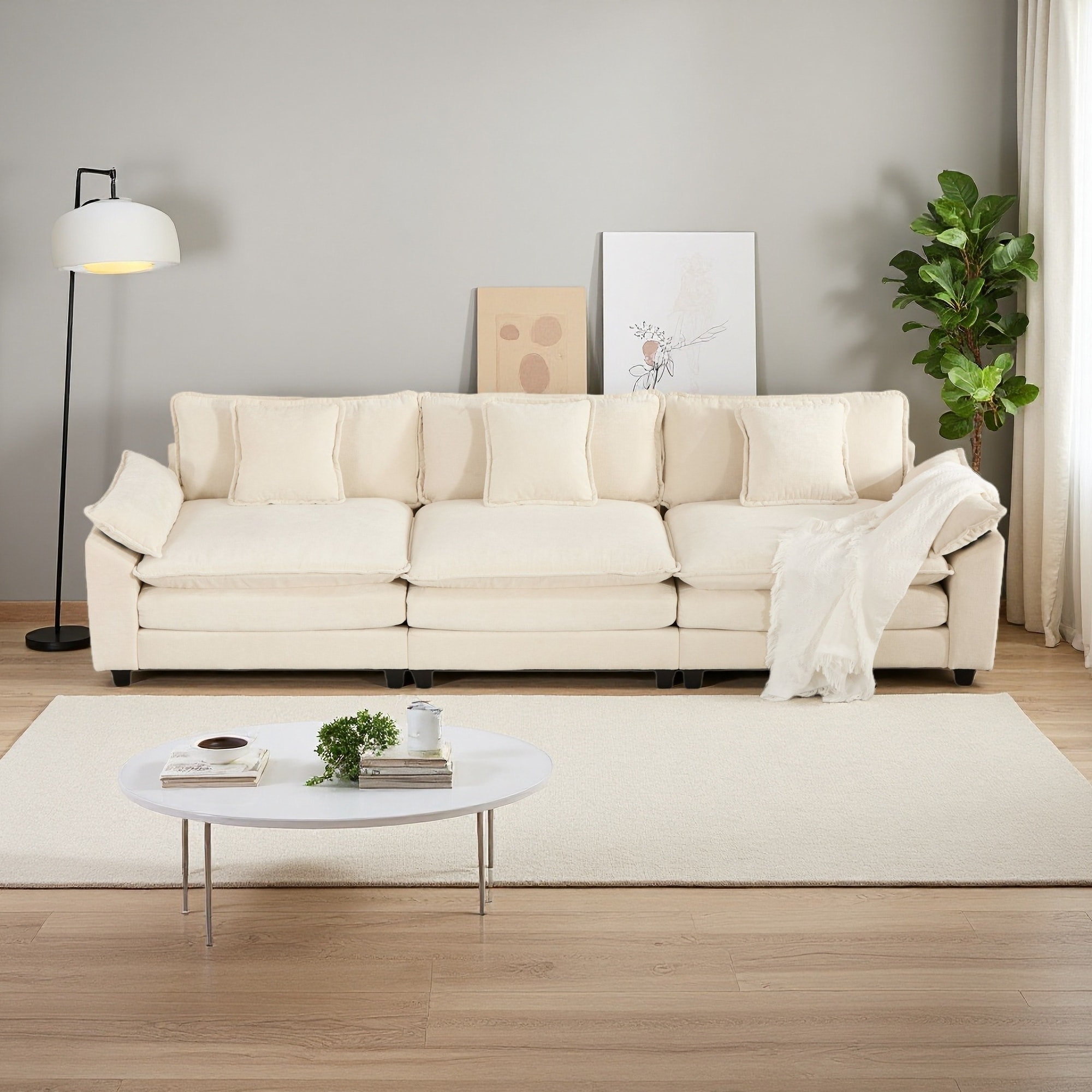 L-Shaped Cloud Sectional Couch, 118" Huge Plus Modular Corduroy Couches with Reversible Chaise Ottoman