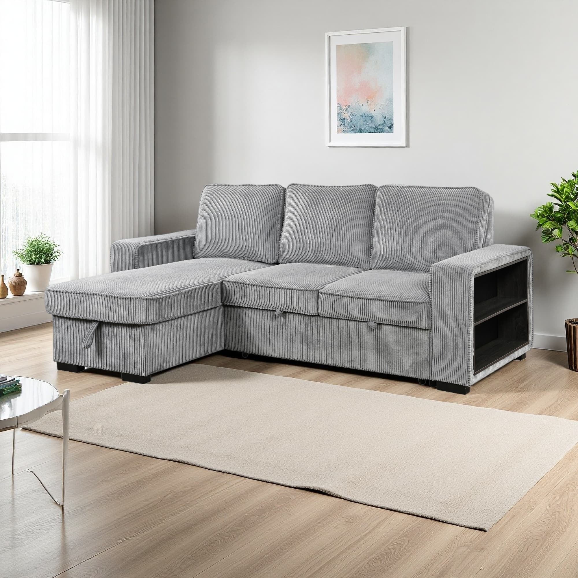 94" Upholstered L-Shaped Sectional Sofa Bed with Storage & USB