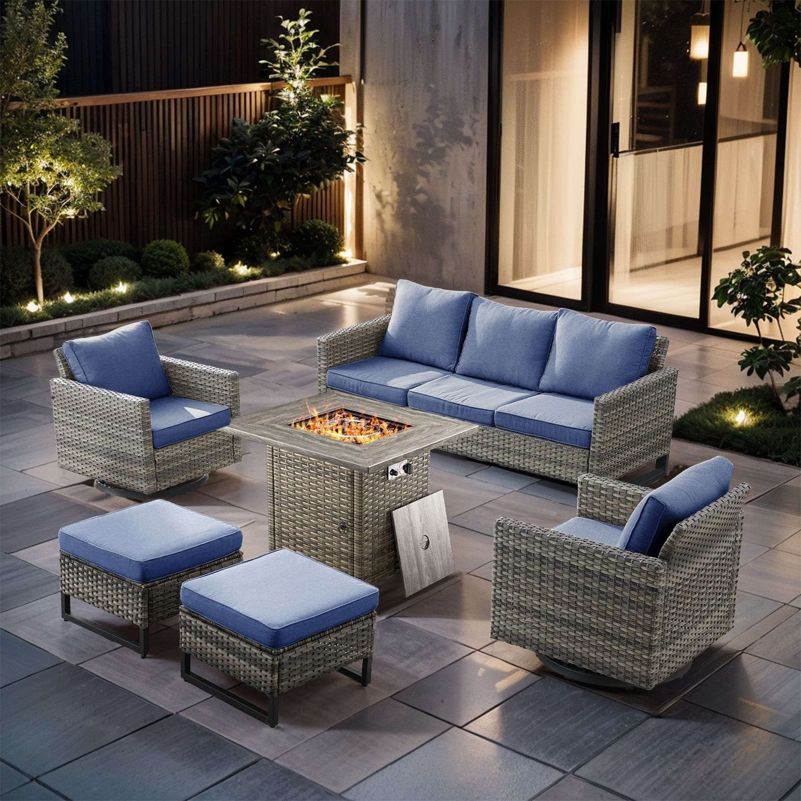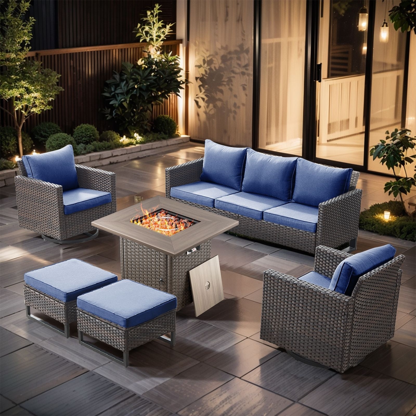 6 Pieces Fire Pit Table with Sofa Swivel Chair Ottoman Set