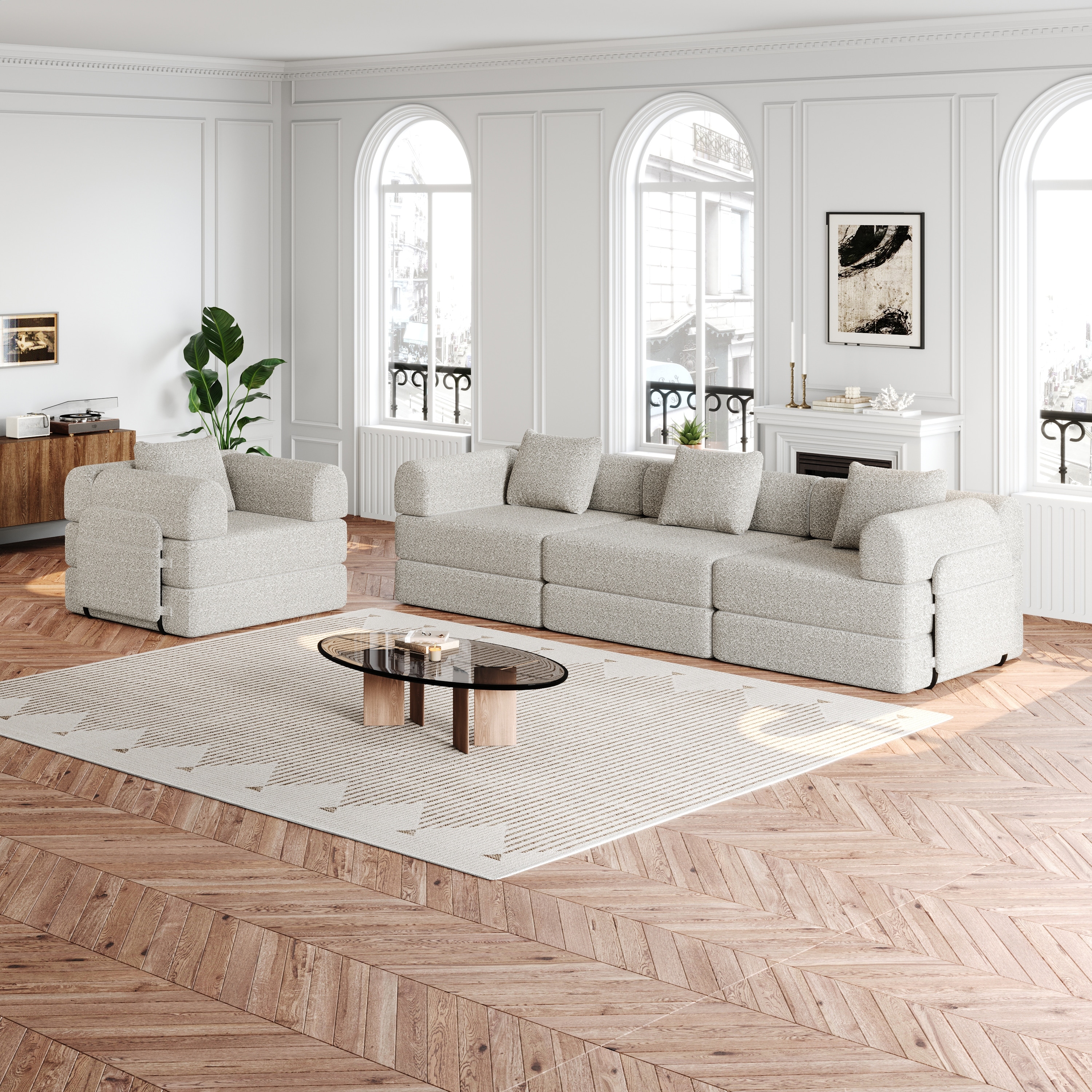 82" Modern Modular Sectional, Flannelette, High-Textured, 2-Seater, Deep Seat, Boneless, Anti-Slip, No Assembly