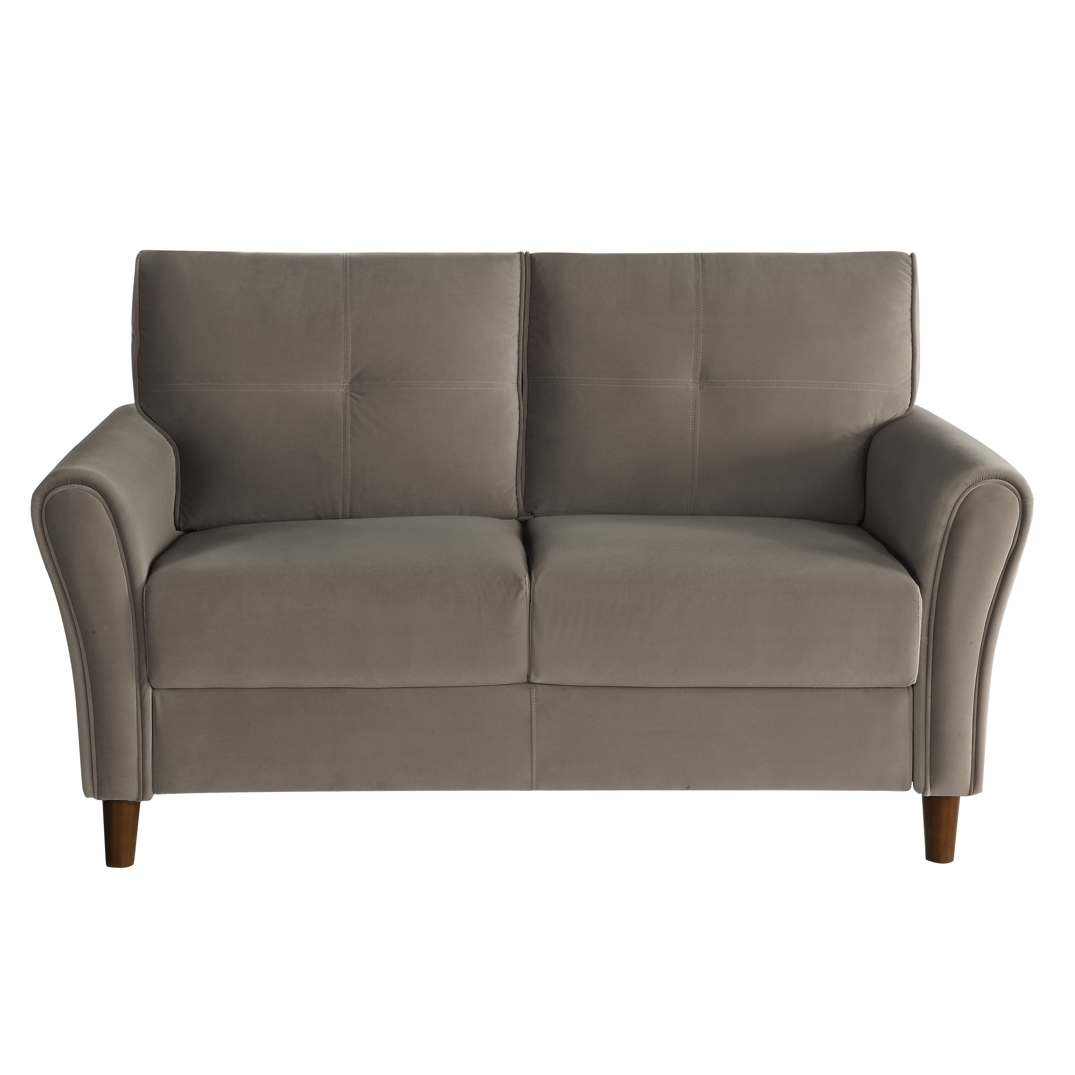 Brown Velvet Upholstery 1pc Comfort Loveseat Plush Seatbacks Tufted Detail Solid Wood Frame Modern Living Room Furniture