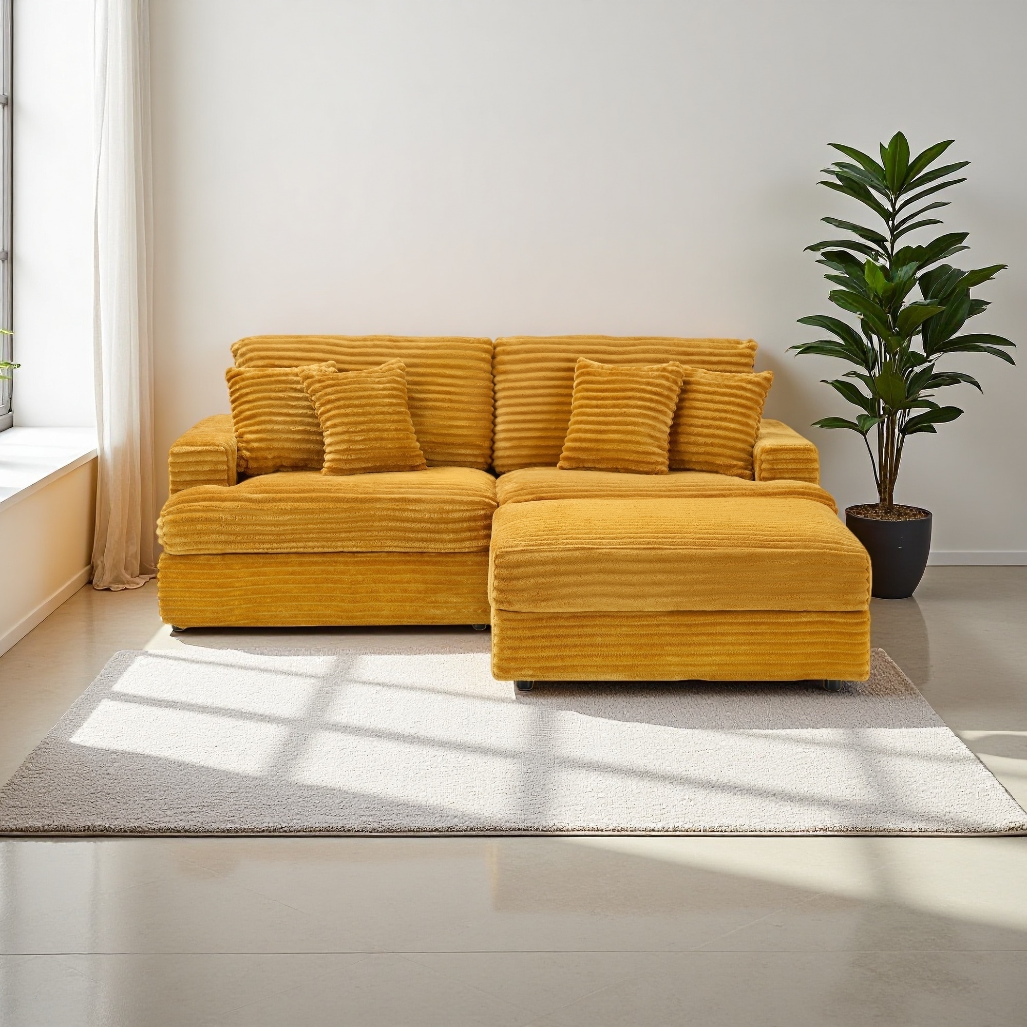 Convertible U-Shaped Combination Sofa Corduroy Fabric Modern Comfortable Large Size 4 Seat Sofa
