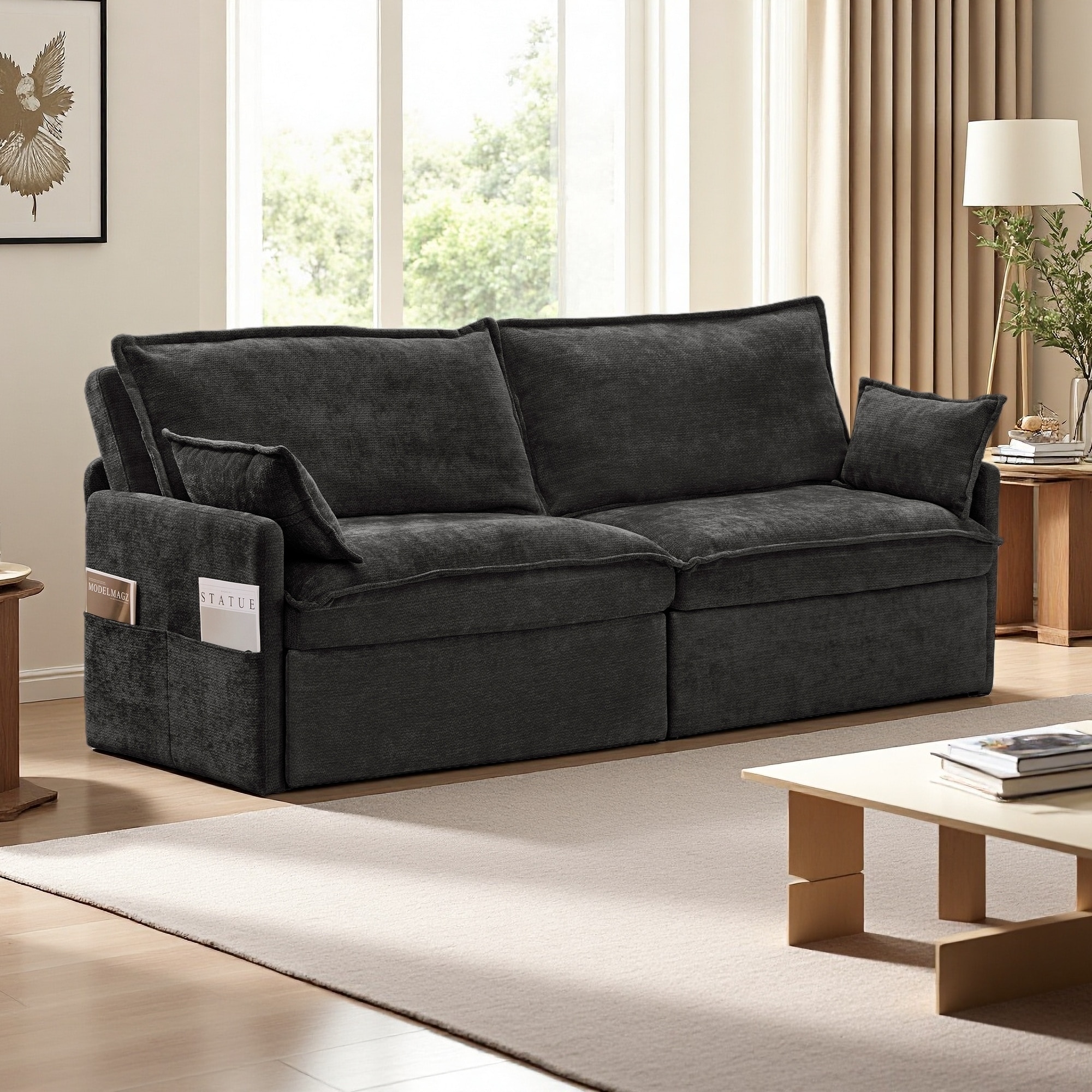 73.6" Chenille 3-in-1 Pull-Out Sofa Bed with Side Storage & USB