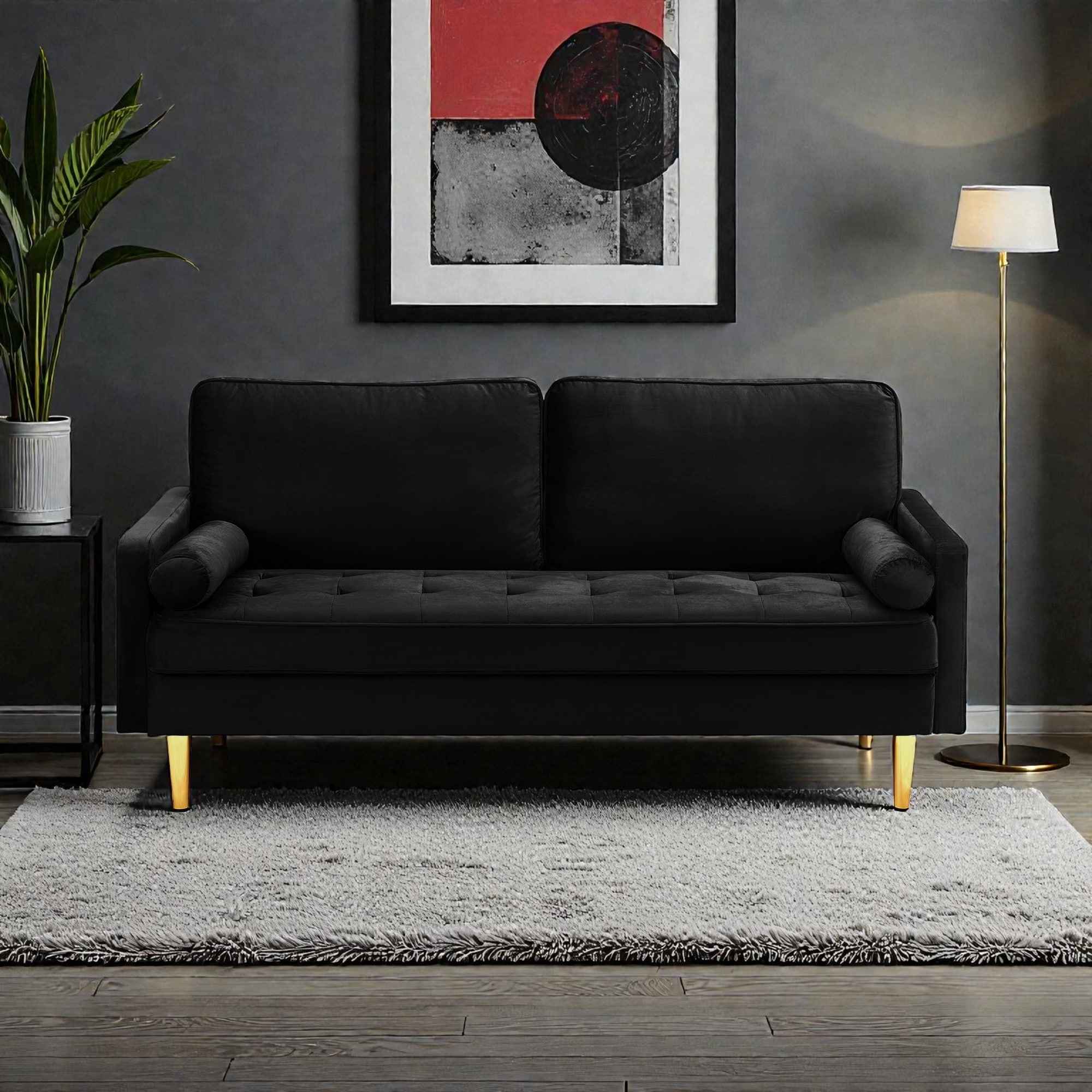 65-Inch Velvet Loveseat Sofa with Metal Legs, Solid Wood Frame, High-Density Cushion Couch for Living Room Bedroom