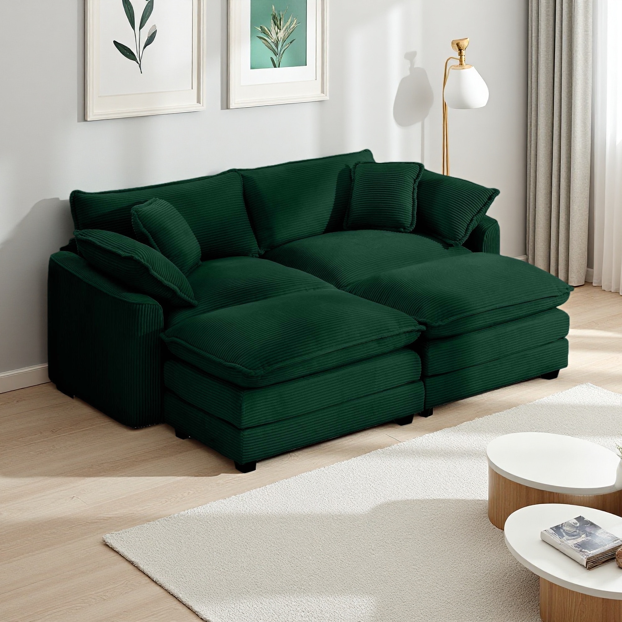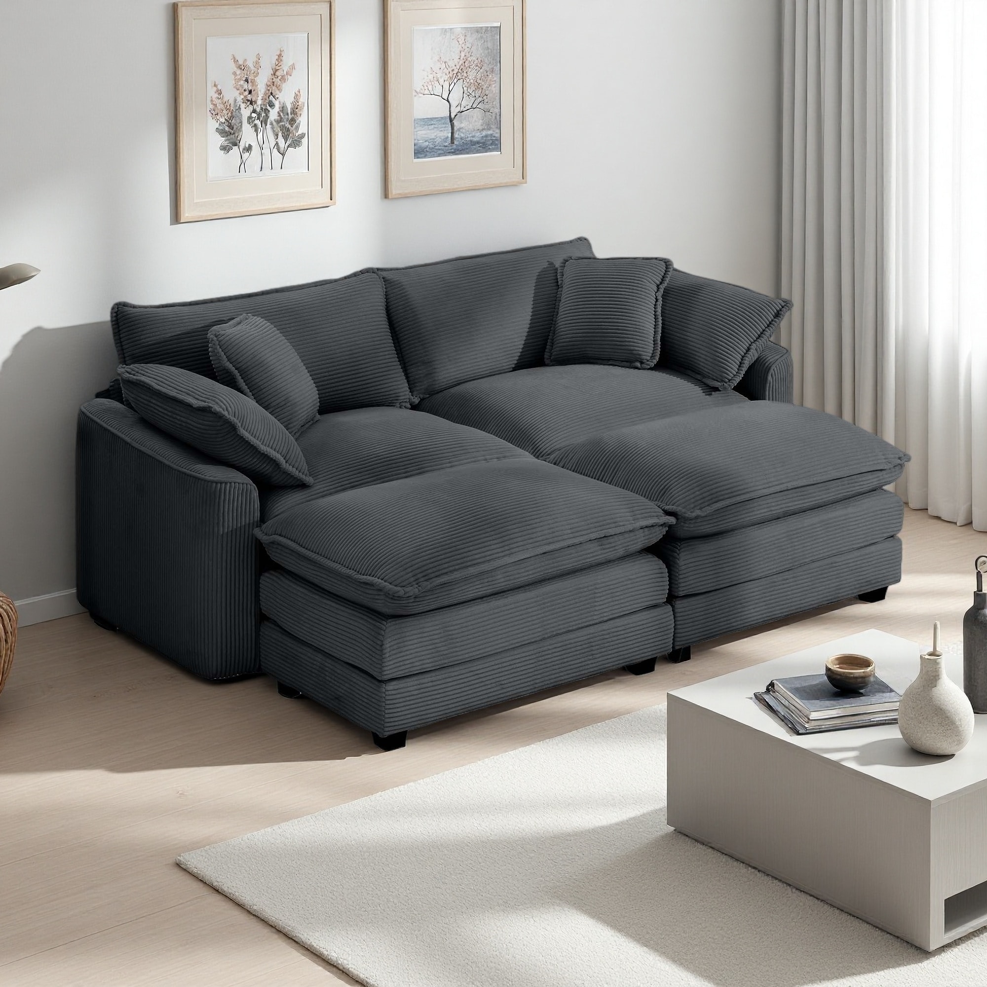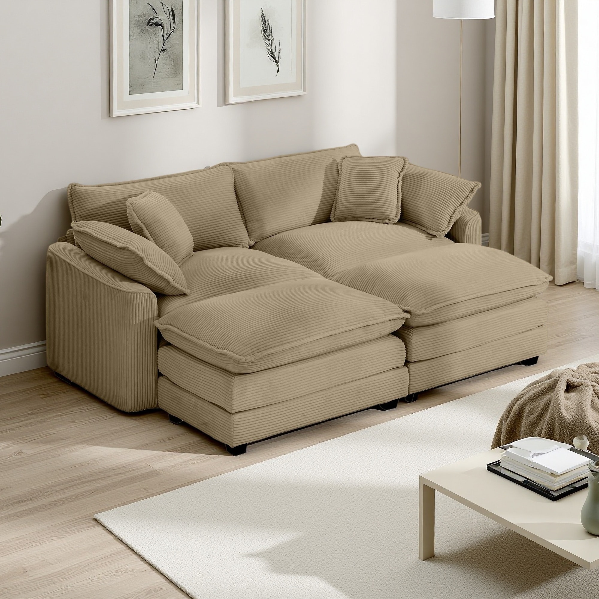 80.3" Corduroy Modular Sectional Sofa with 2 Ottomans, 2-Seater
