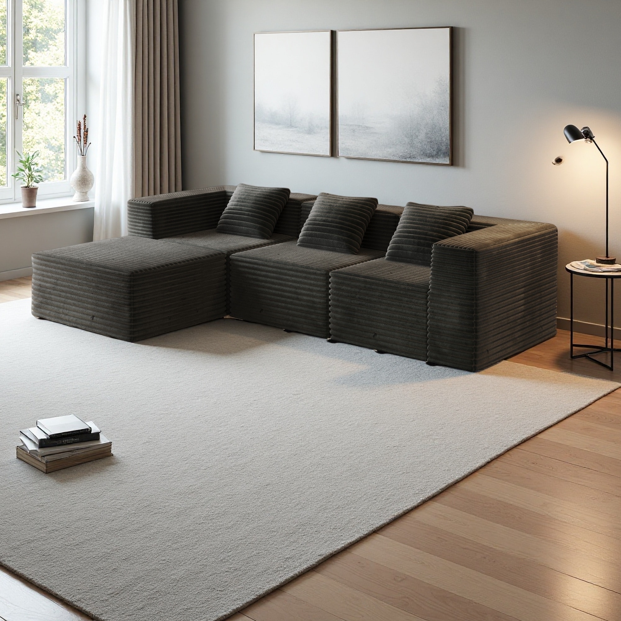 106" Corduroy Modular 3-Seater Sectional Sofa with Ottoman, No Assembly