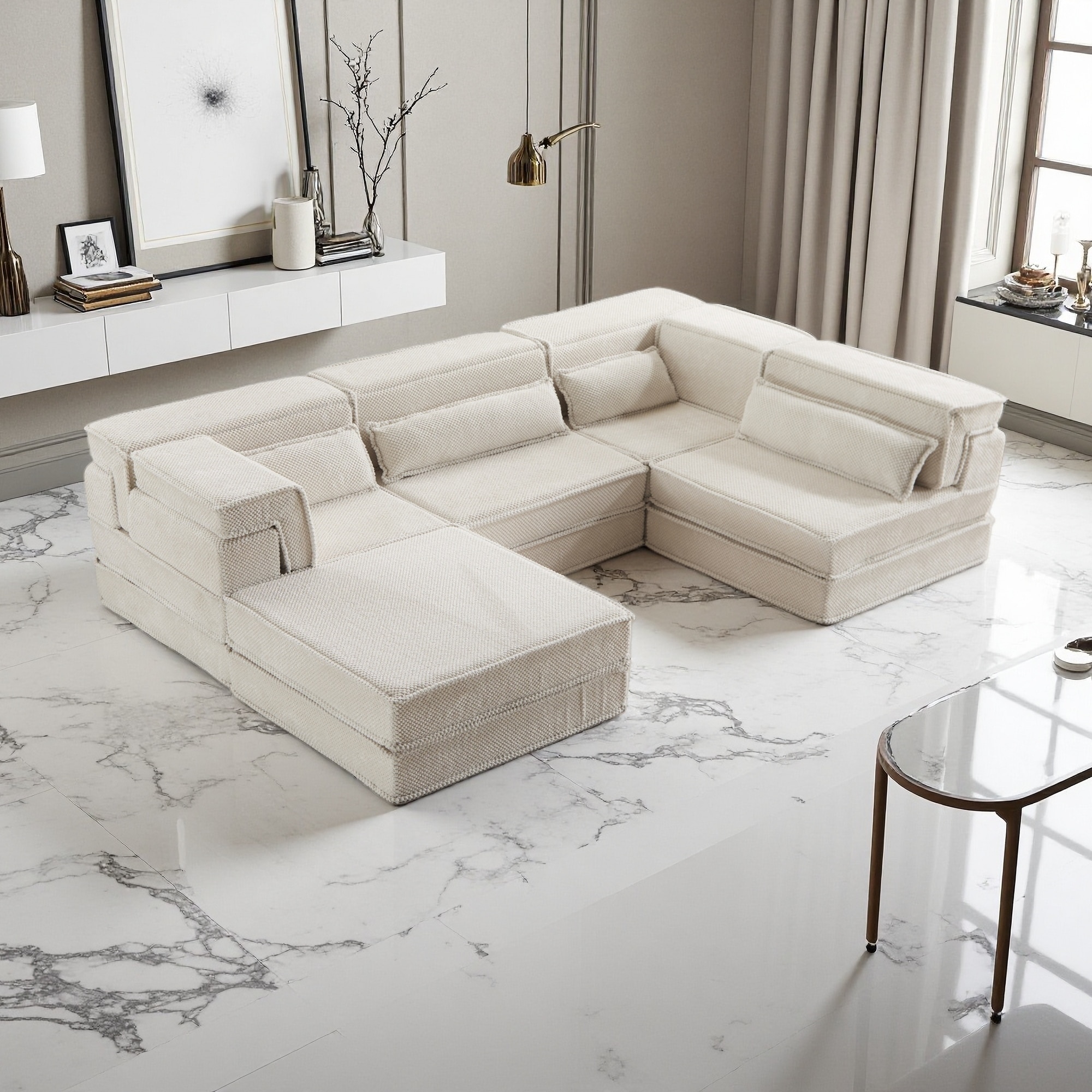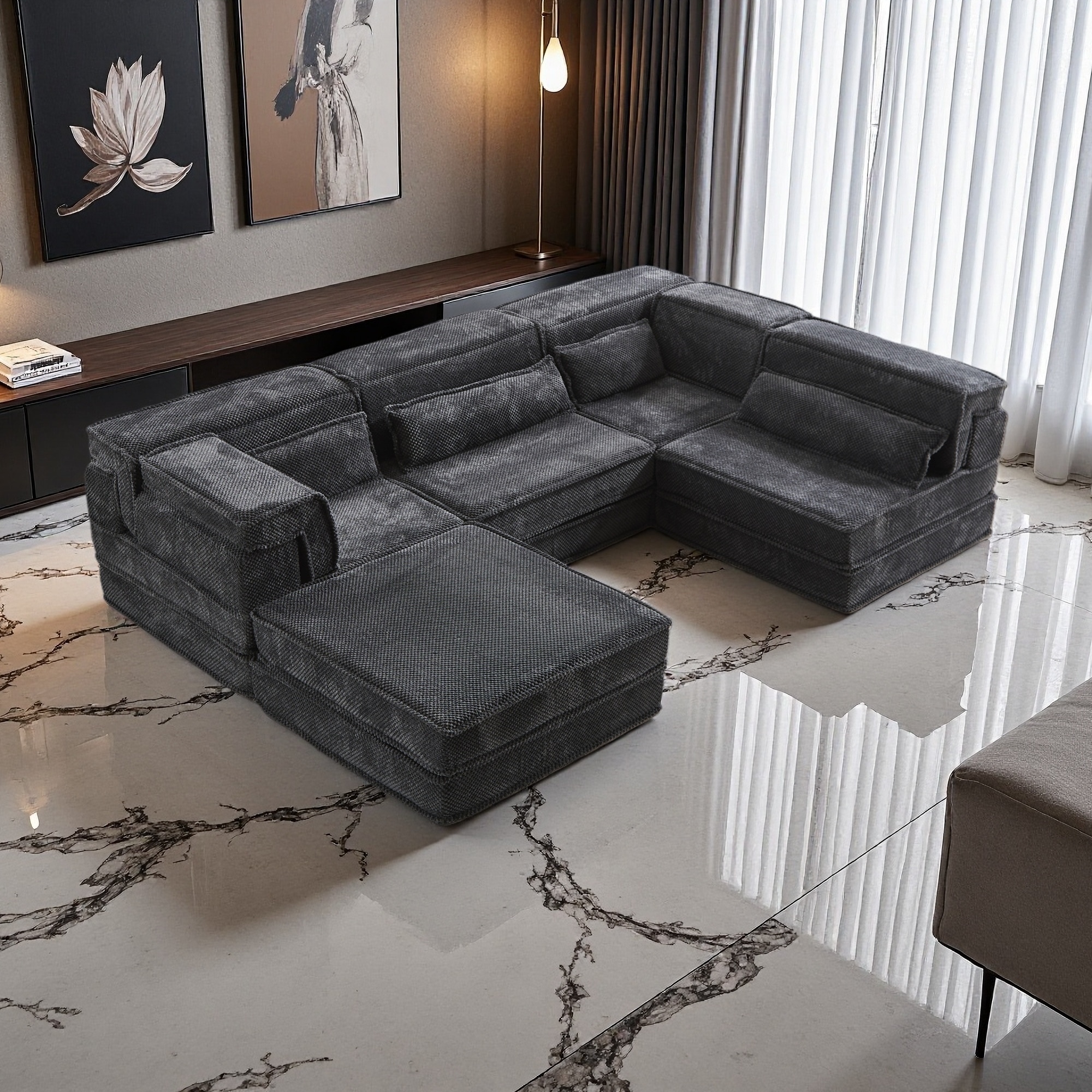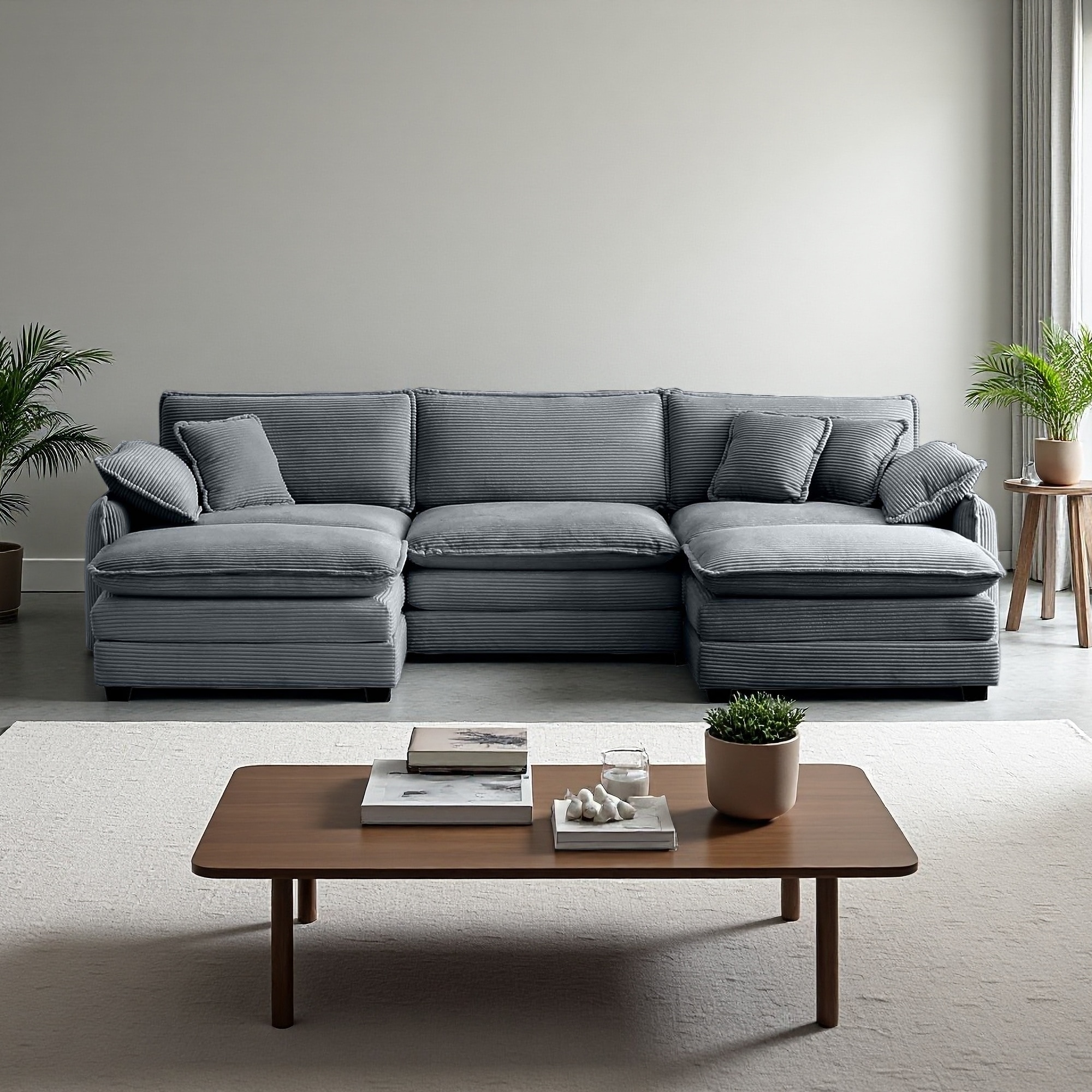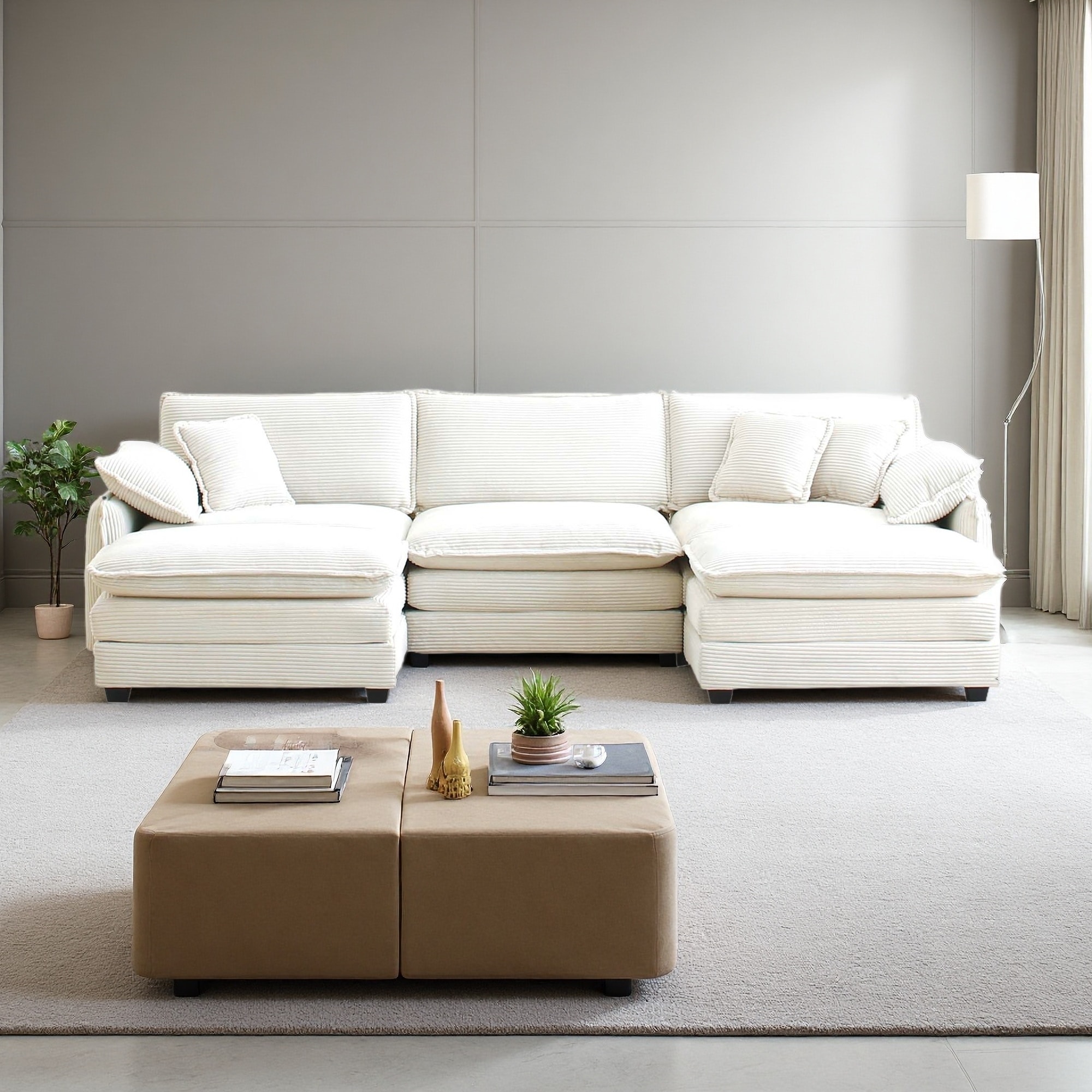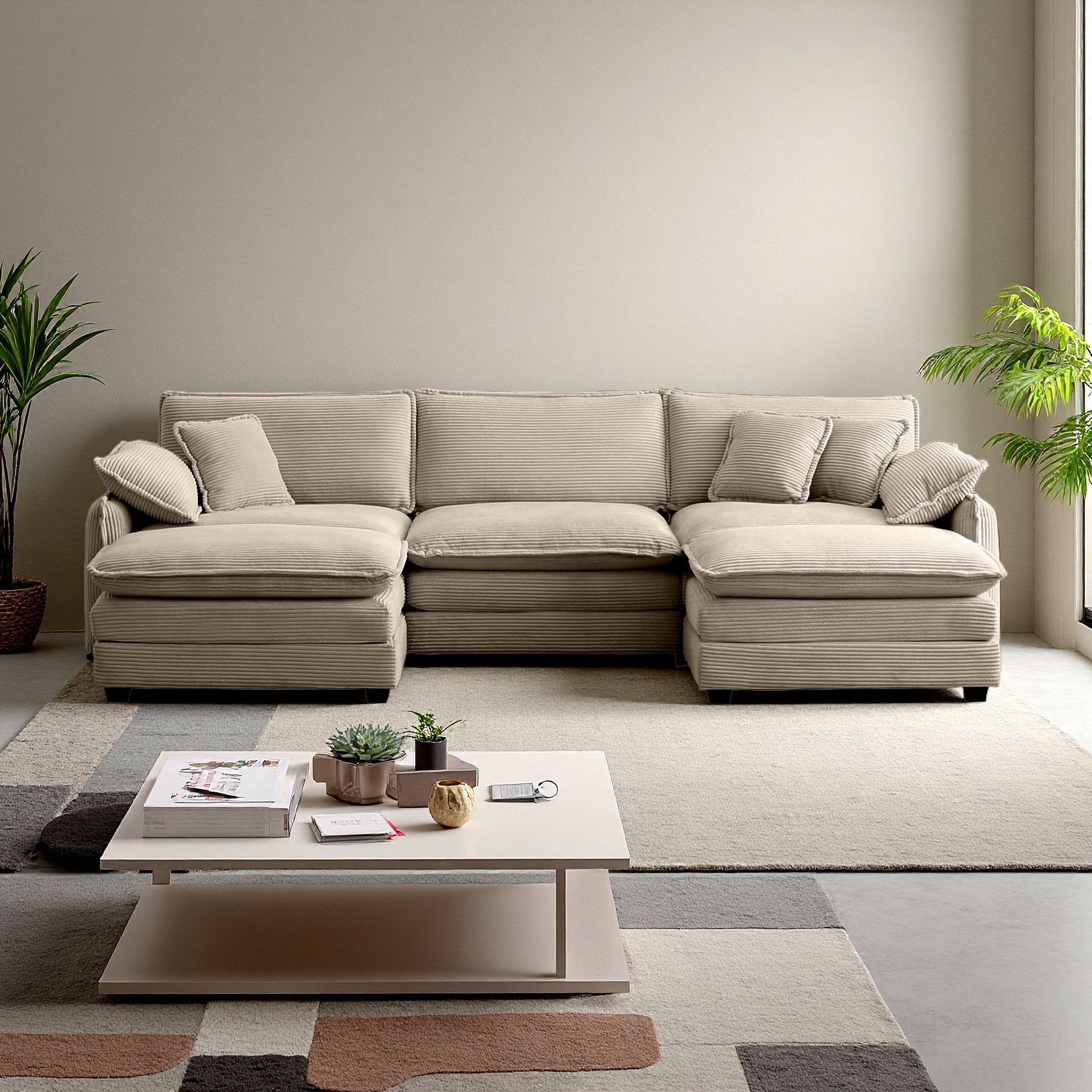 115.3" Corduroy Oversized U-Shaped Modular Sectional Sofa, 3-Seater
