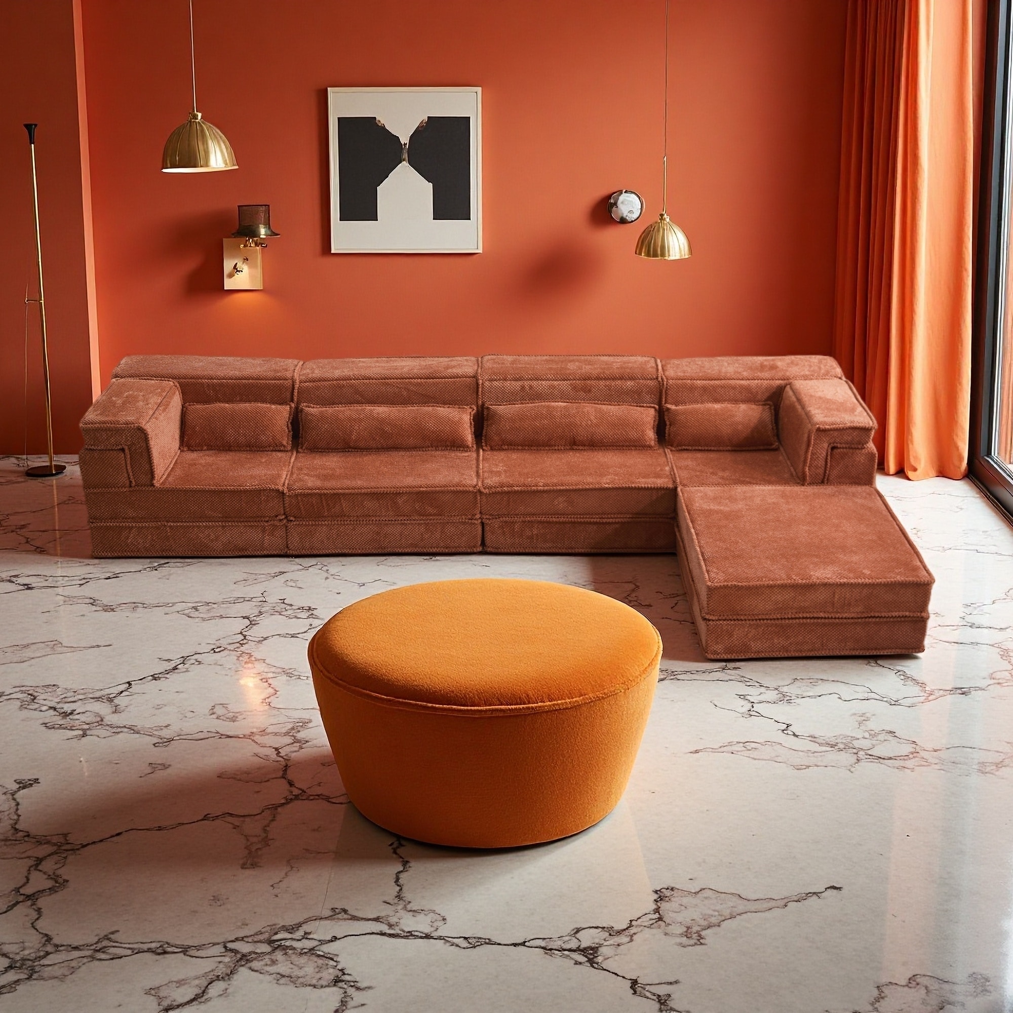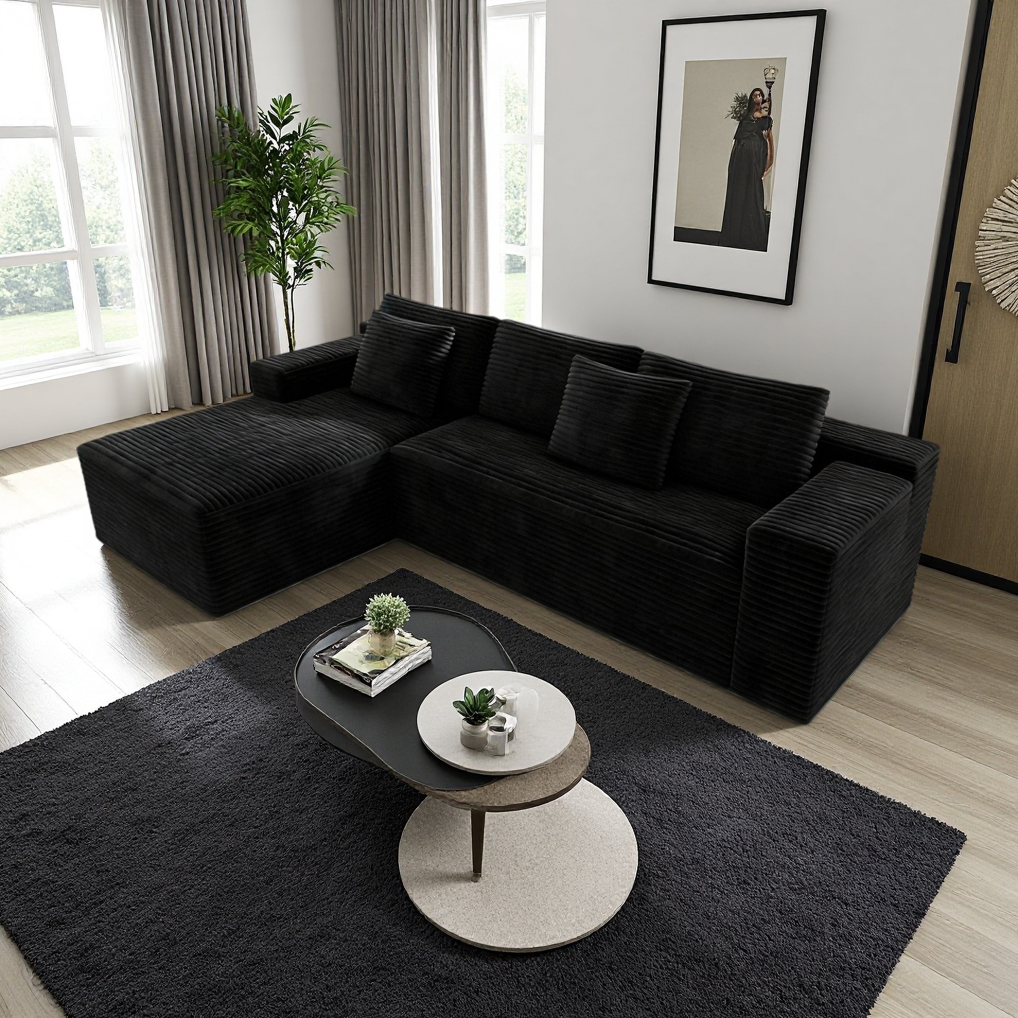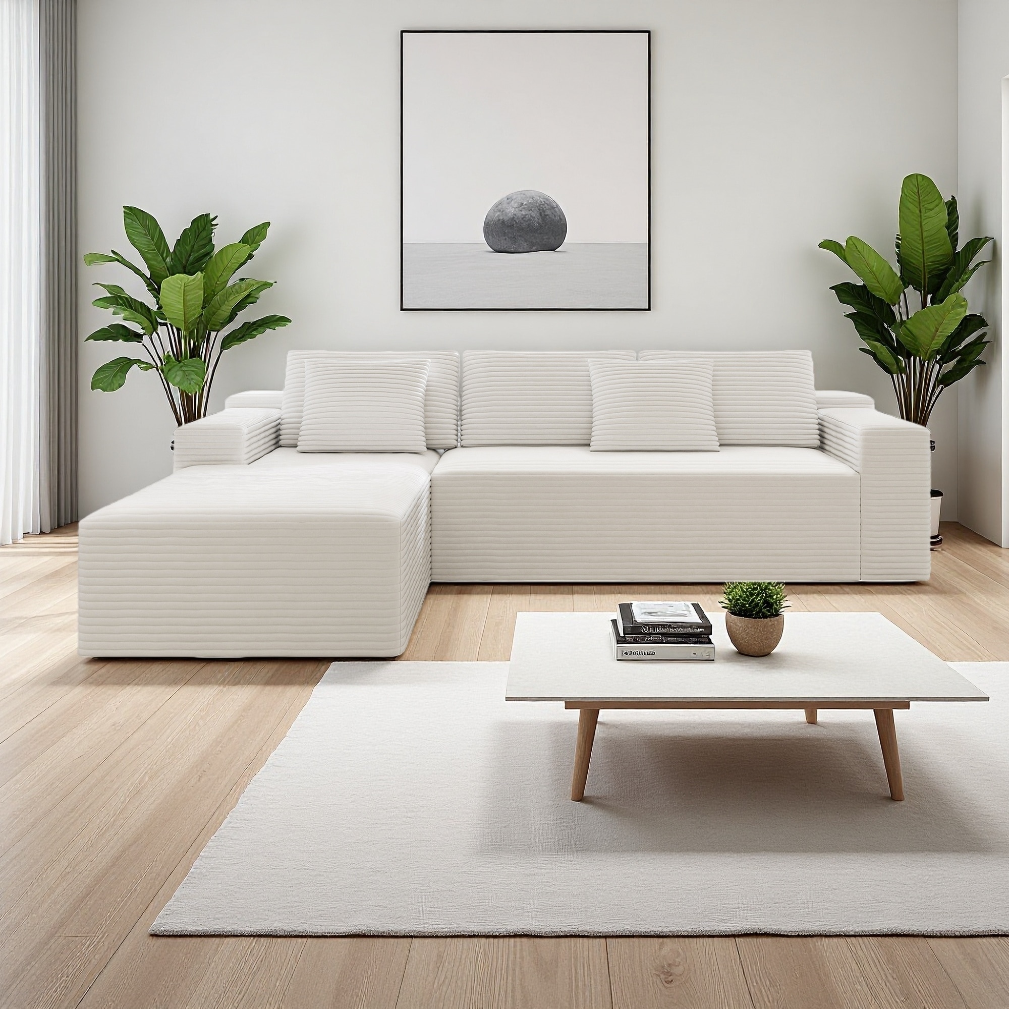 104.3" Plush Corduroy Modular Sectional Sofa with Left Chaise, No Assembly
