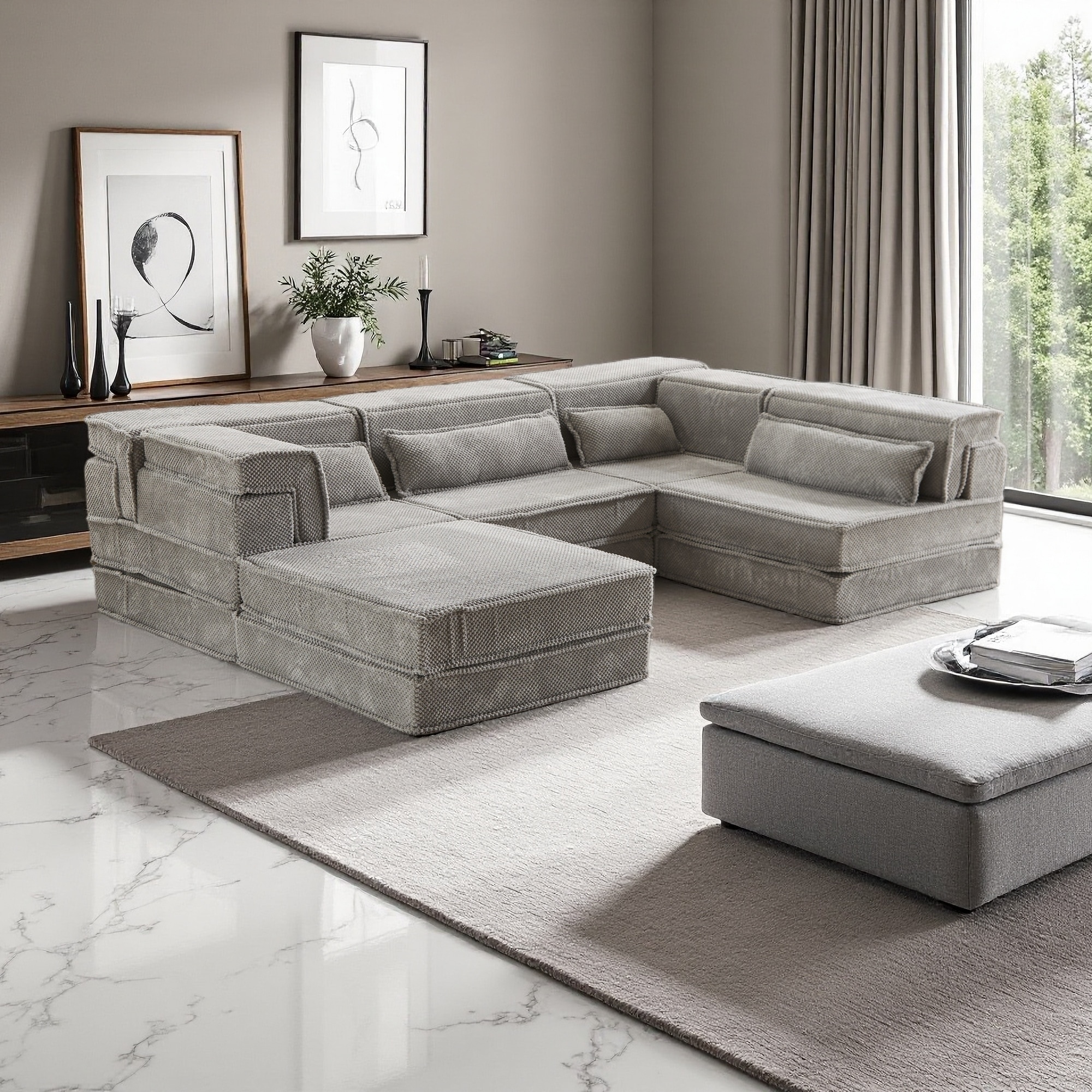 157.5" Fleece Boneless Modular Sectional Sofa with Ottoman