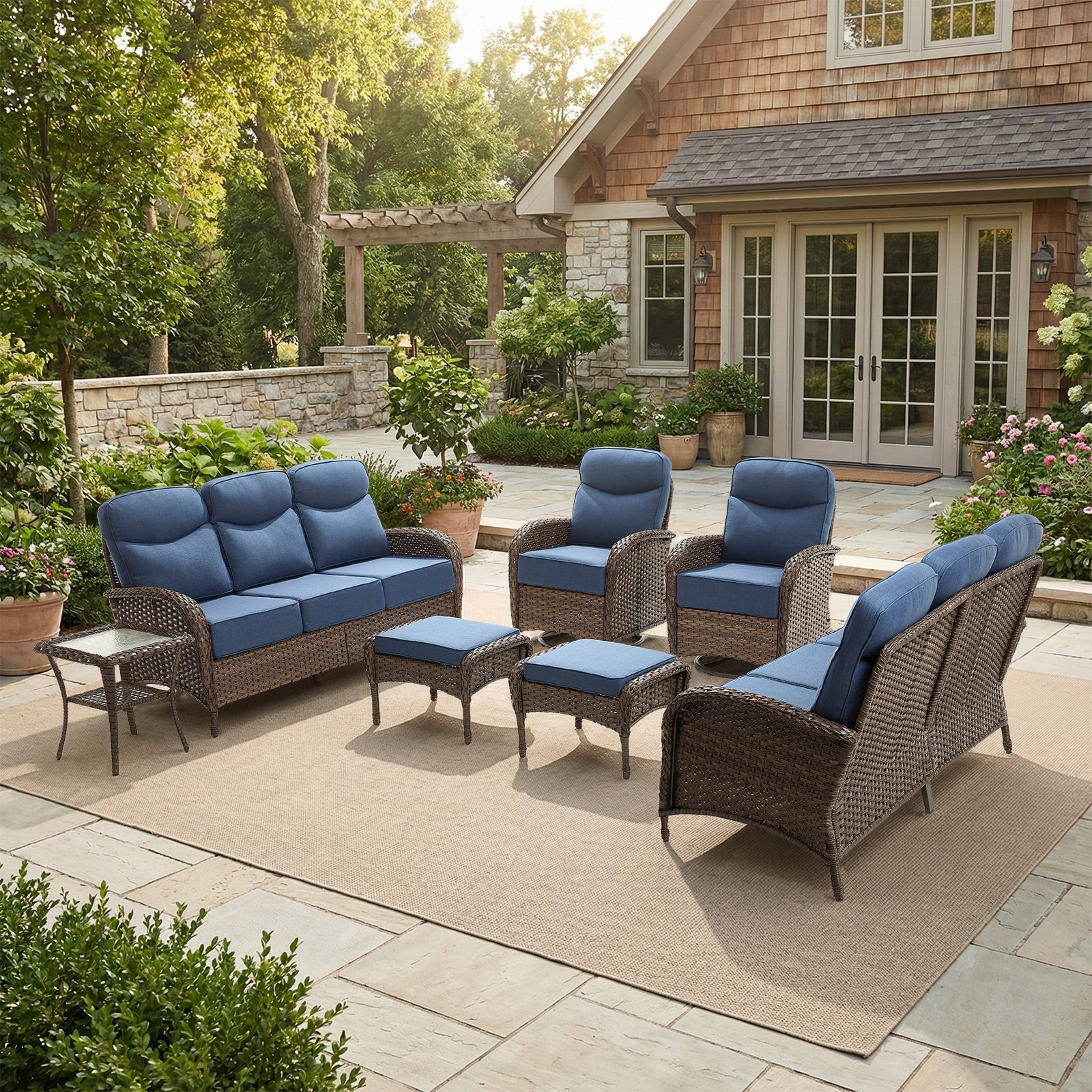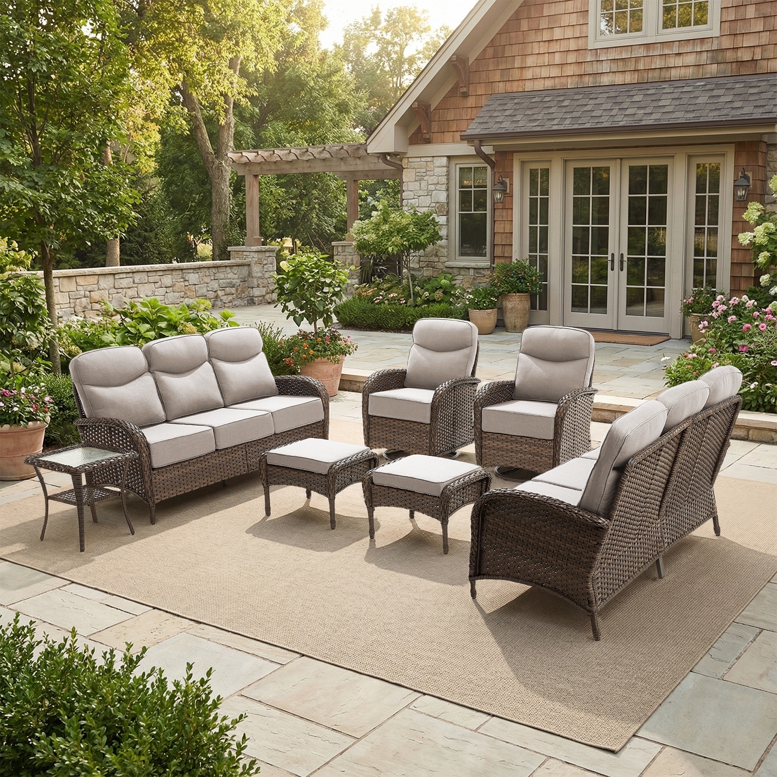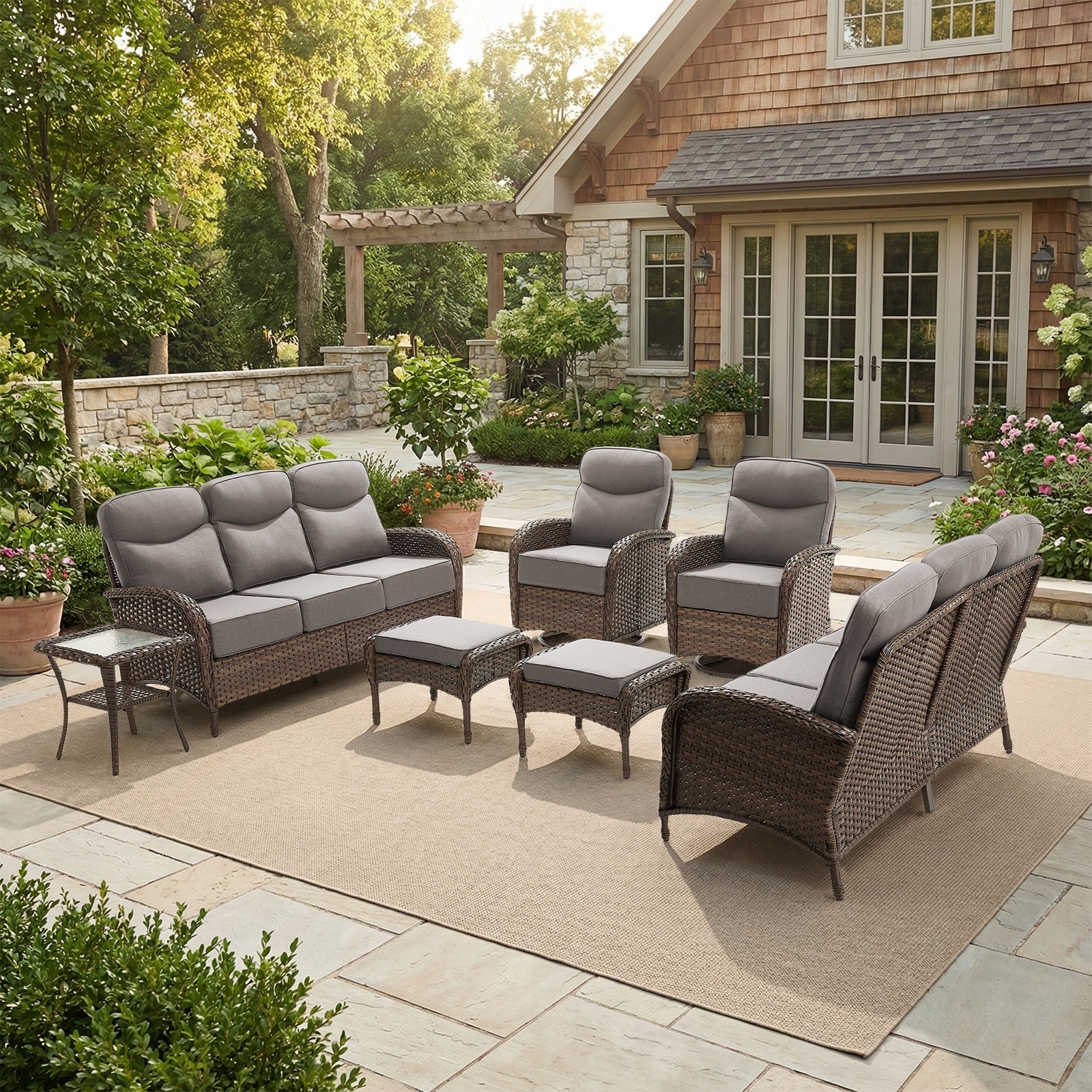 Gymojoy 10 - Person Outdoor Wicker Conversation Patio Set with Plush 6" Cushions, All-Weather Comfort