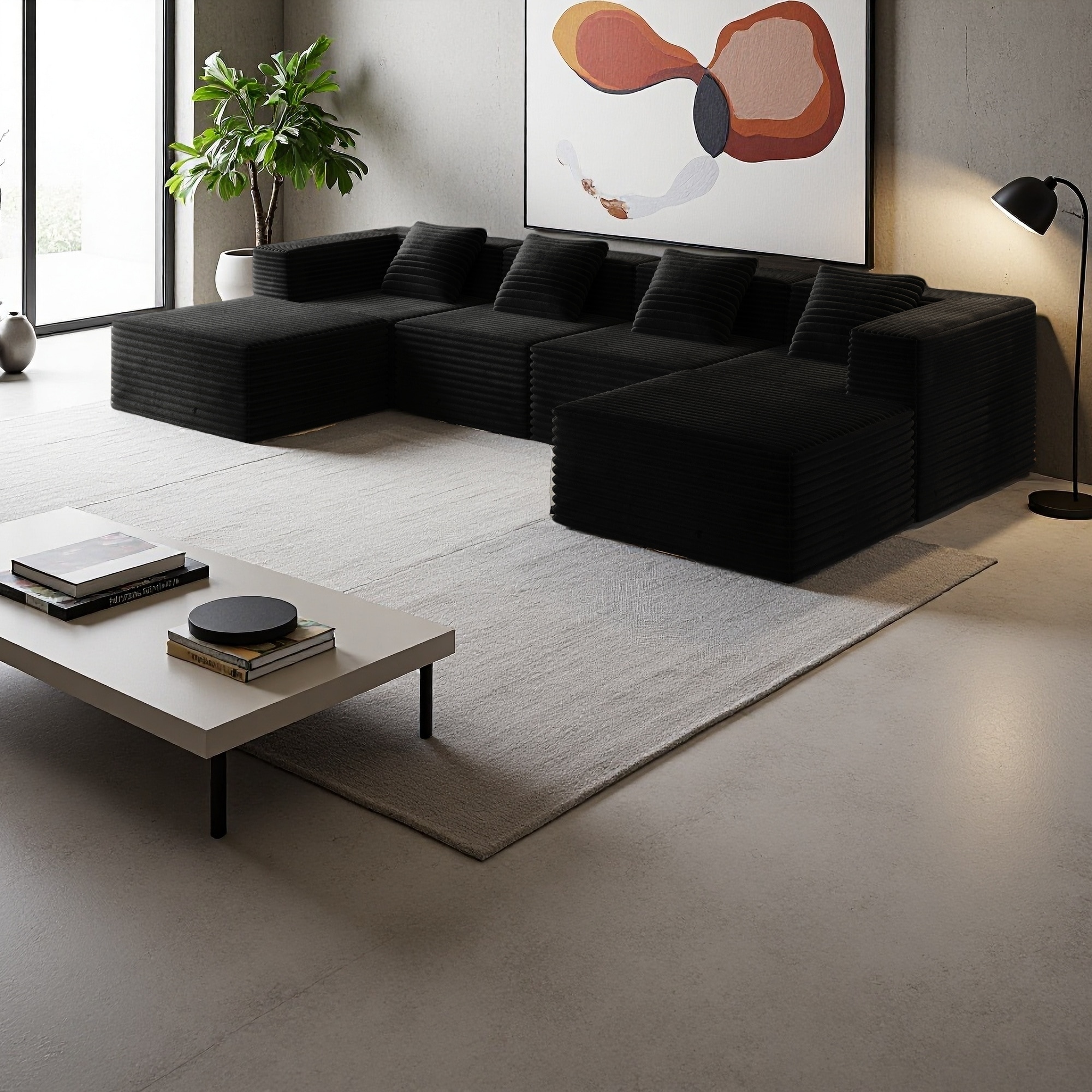 136" Corduroy Modular 4-Seater Sectional Sofa with 2 Ottomans, No Assembly
