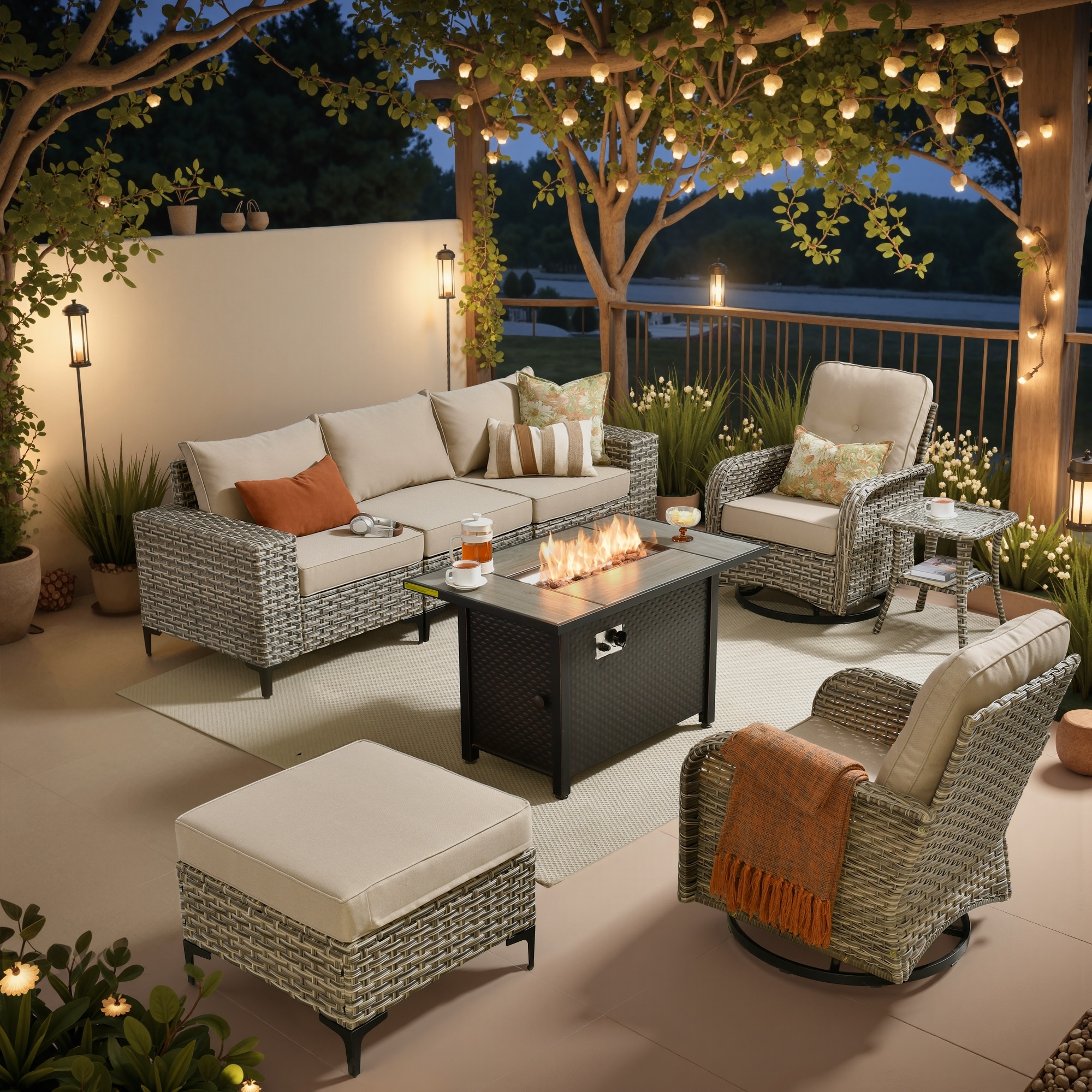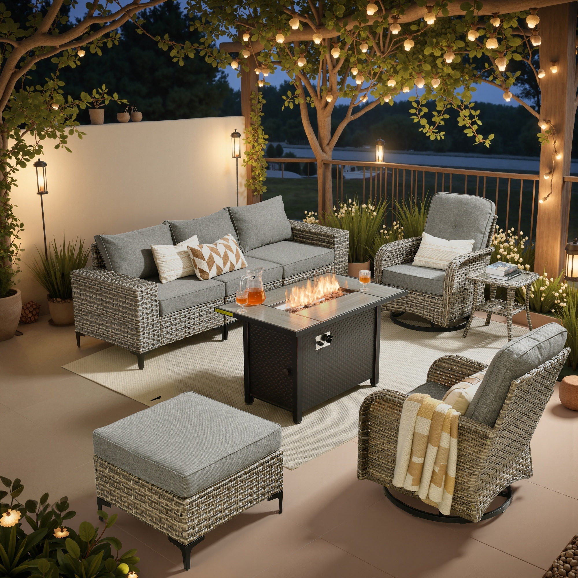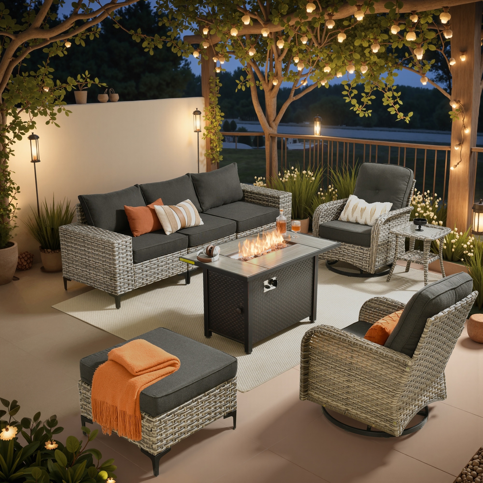 XIZZI Outdoor Patio Furniture Sectional Set with Swivel Chairs