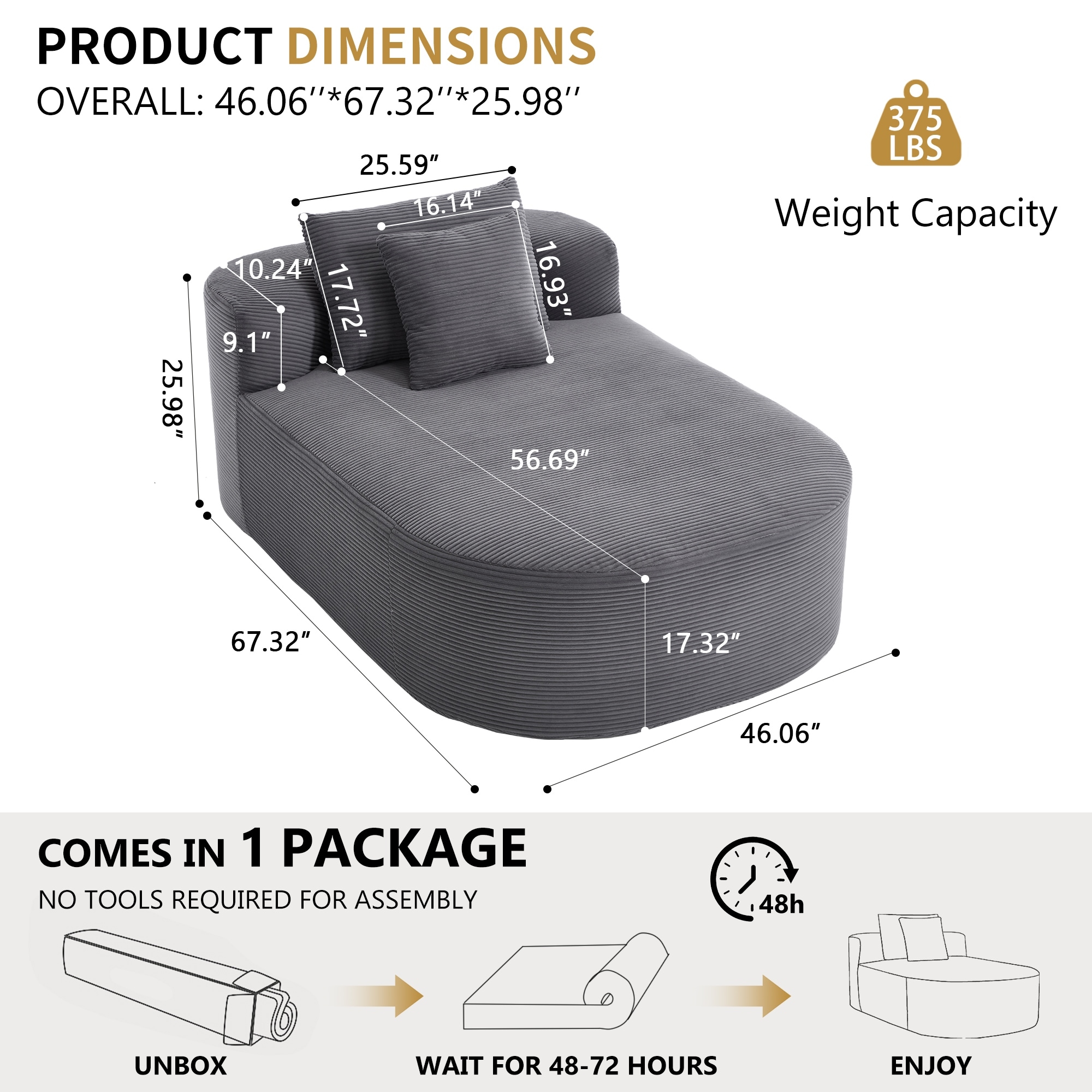 70.92" Corduroy 3-Seater Sofa, Deep Seat, Comfy Loveseat, No Assembly