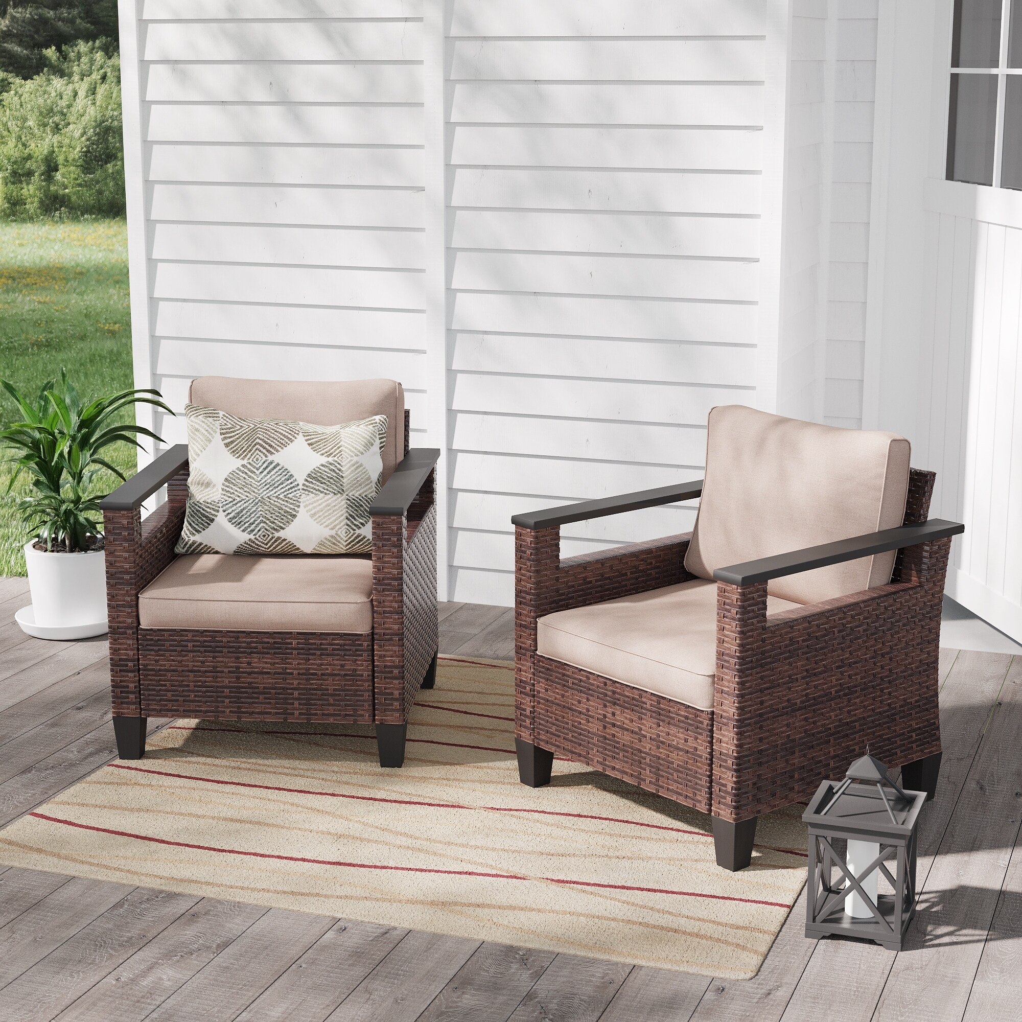 Bonosuki 2 Piece Wicker Patio Chairs Set, All-Weather PE Rattan Wicker Chair Small Patio Conversation Couch with Gray Cushion