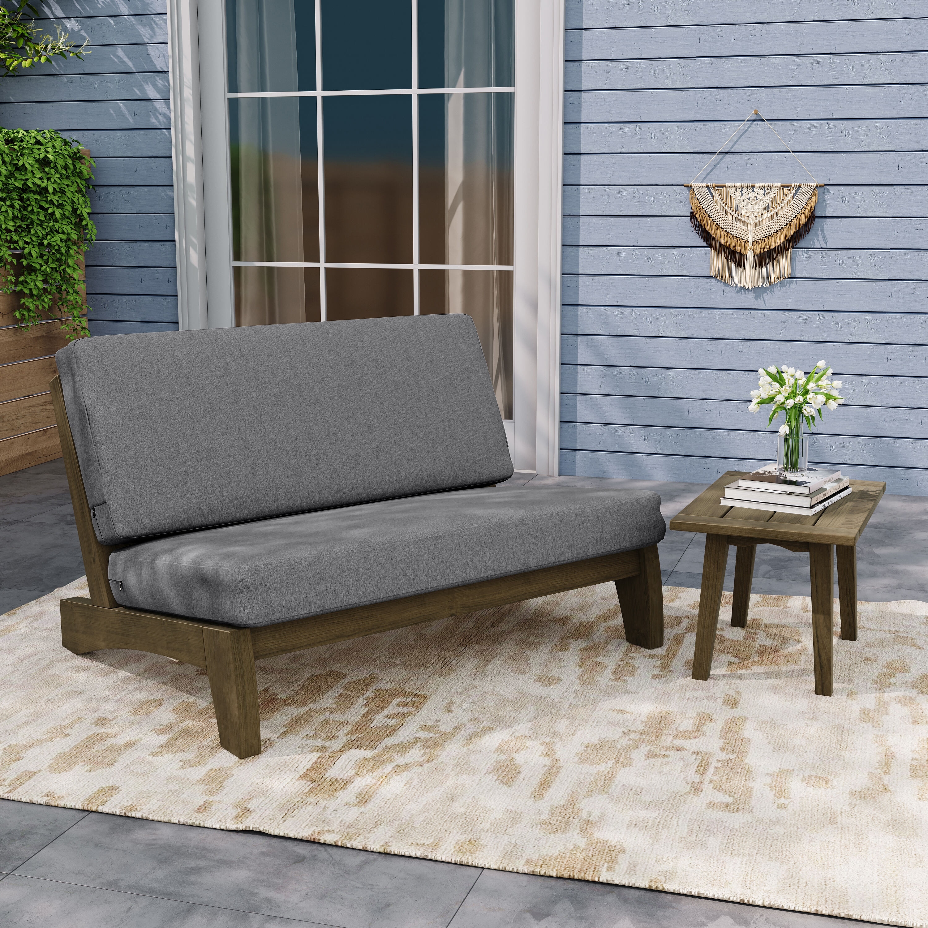 Outdoor Sectional Furniture Teak Conversation Set with Side Table
