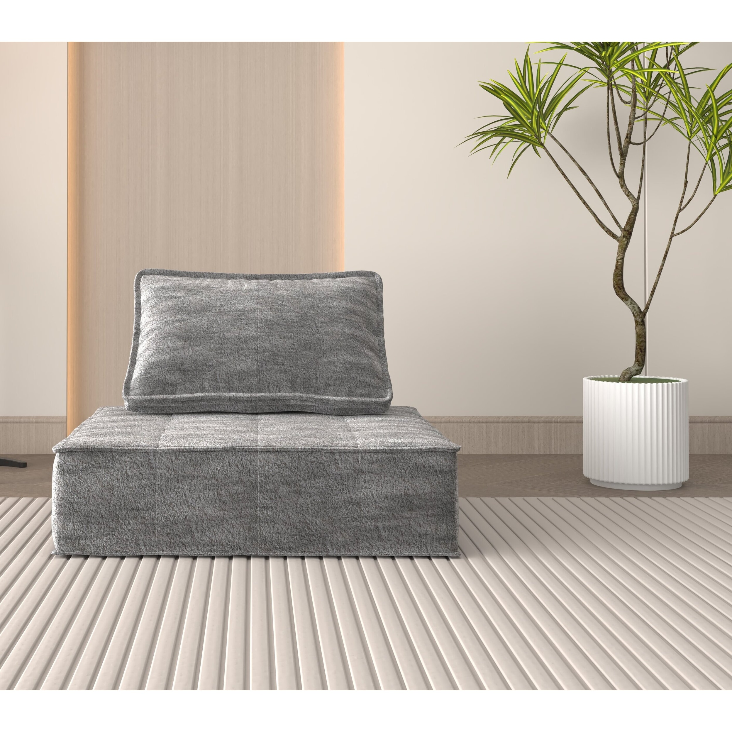 118" Compression Sofa, Convertible Floor Sofa Bed, Fixed-Shape Frame, Modular Chenille Fabric Sectional, No Assembly Required