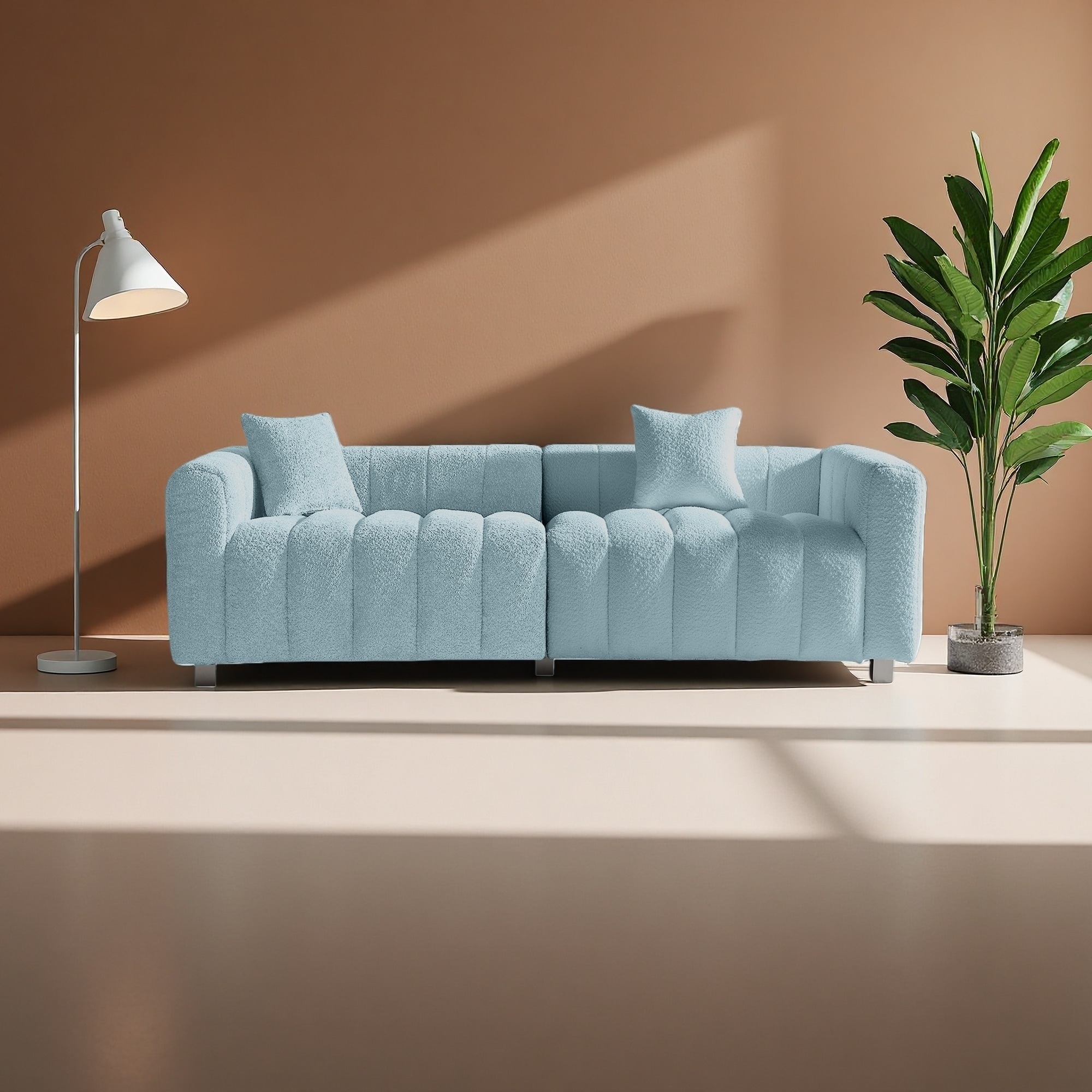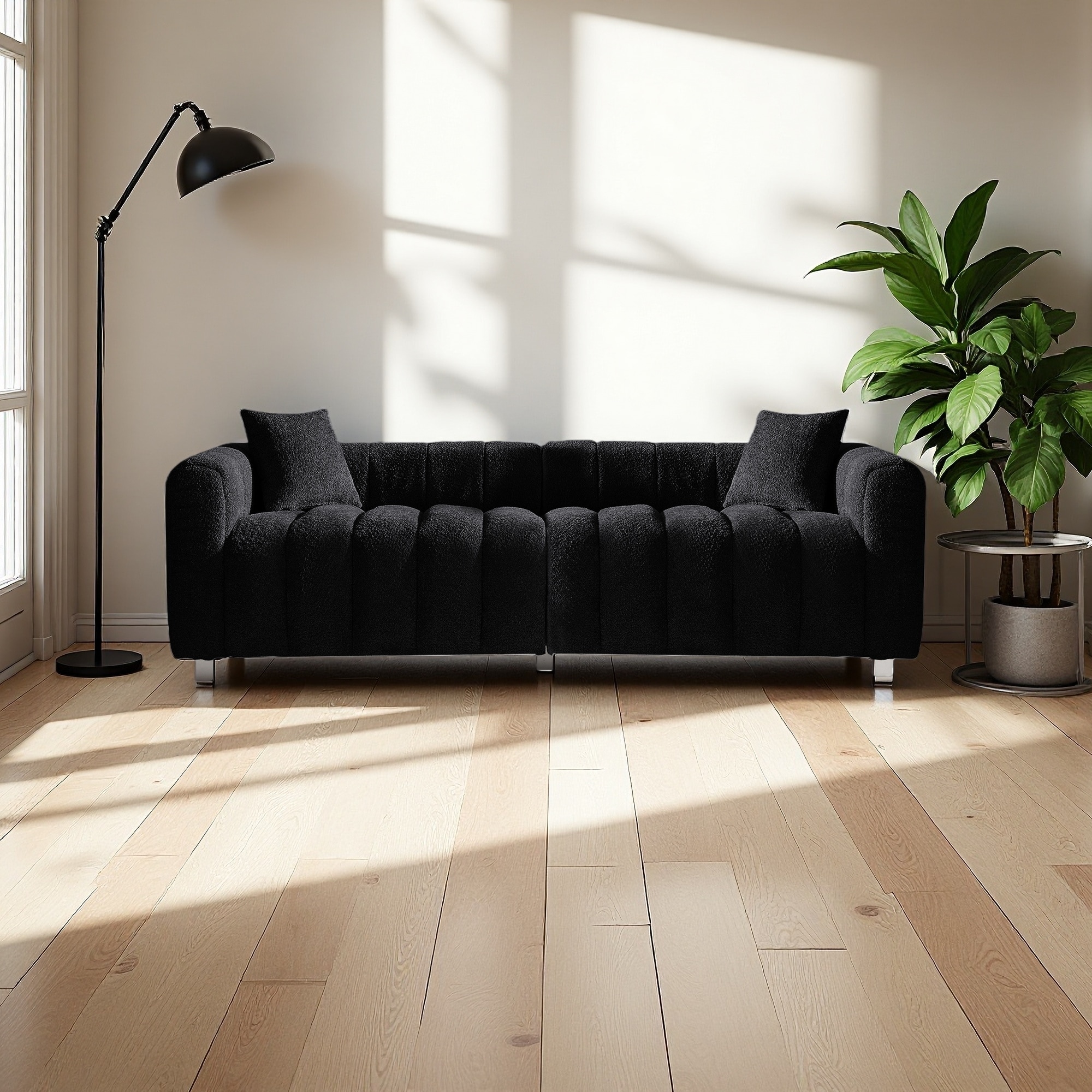 83.46" Velvet Bubble Upholstered Sofa with Metal Base Legs & 2 Pillows